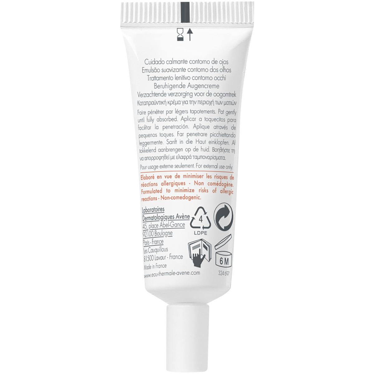 This eye contour cream decongests sensitive eyelids and provides a soothing feeling of lightness. Its formula enriched with hydrating agents protects the eye contour area and eyelids. It hydrates this sensitive and fragile area, reduces sensations of tightness and the appearance of redness around the eyes. Rich in Avène Thermal Spring Water, the Soothing Eye Contour Cream reduces feelings of irritation. Fragrance-free.