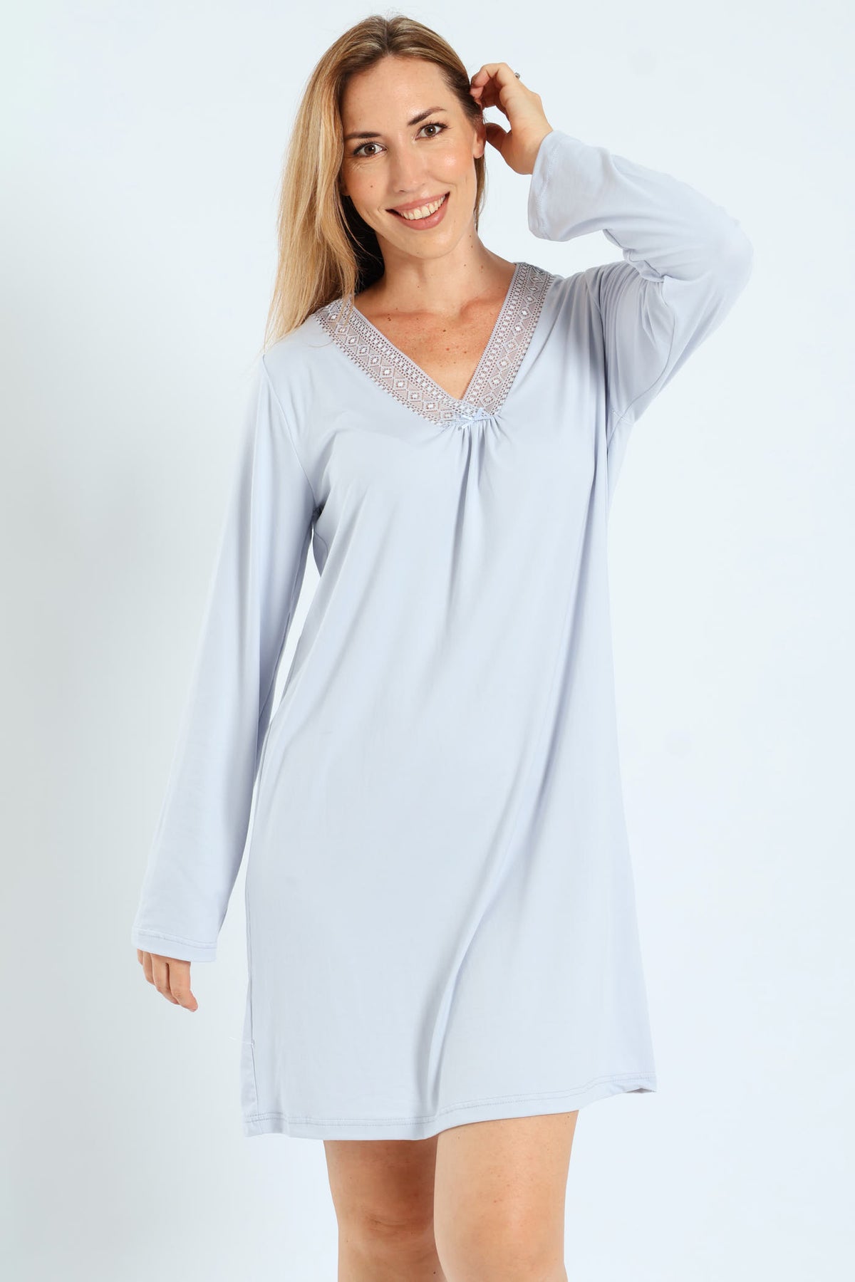 2 Pack Lace Detail Ditsy Floral Sleepshirts - White/Blue