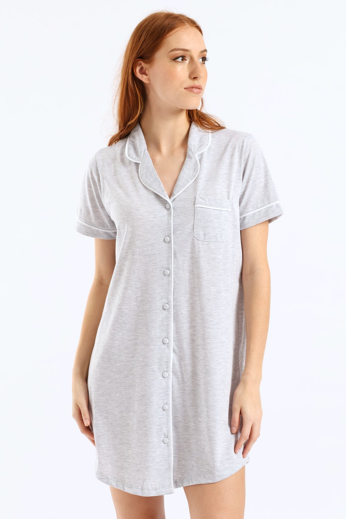 Button Through Knit Sleepshirt - Grey Melange