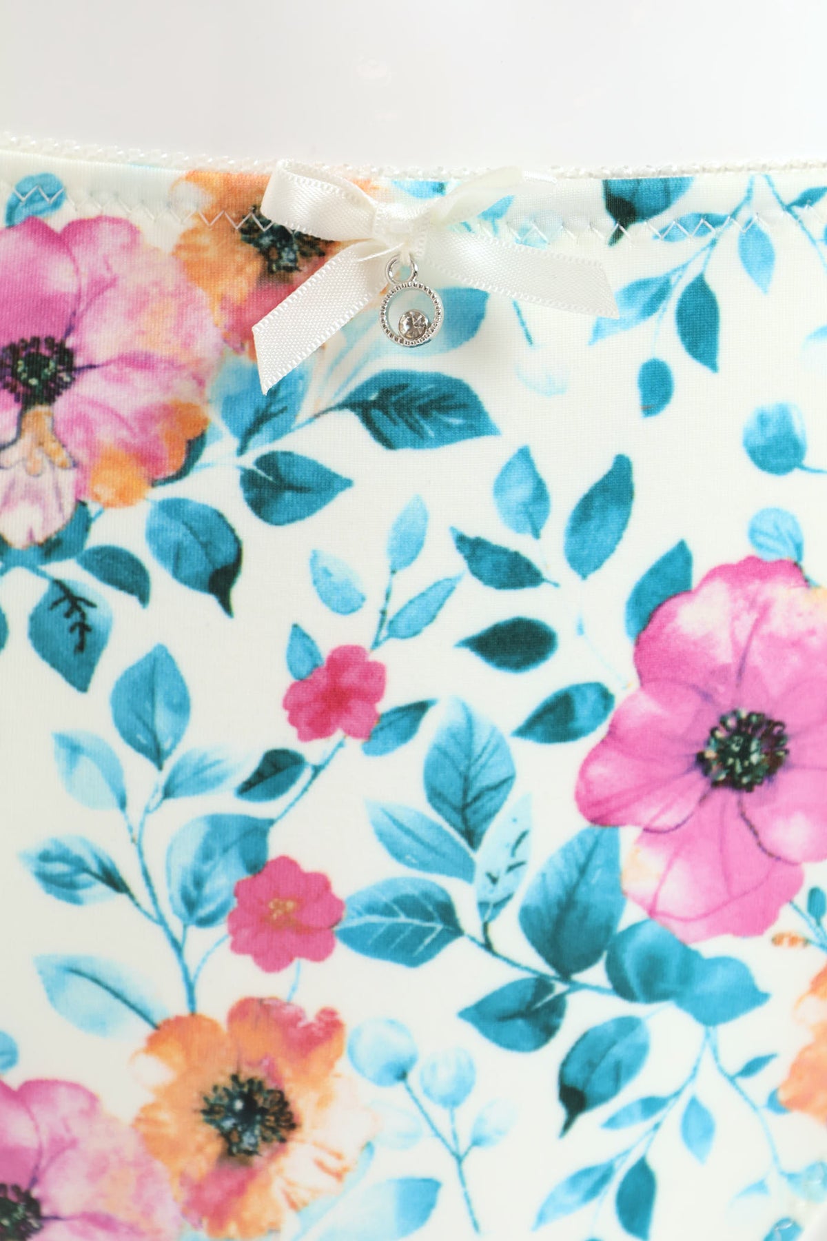 Printed Microfibre & Lace Bikini Panty - White