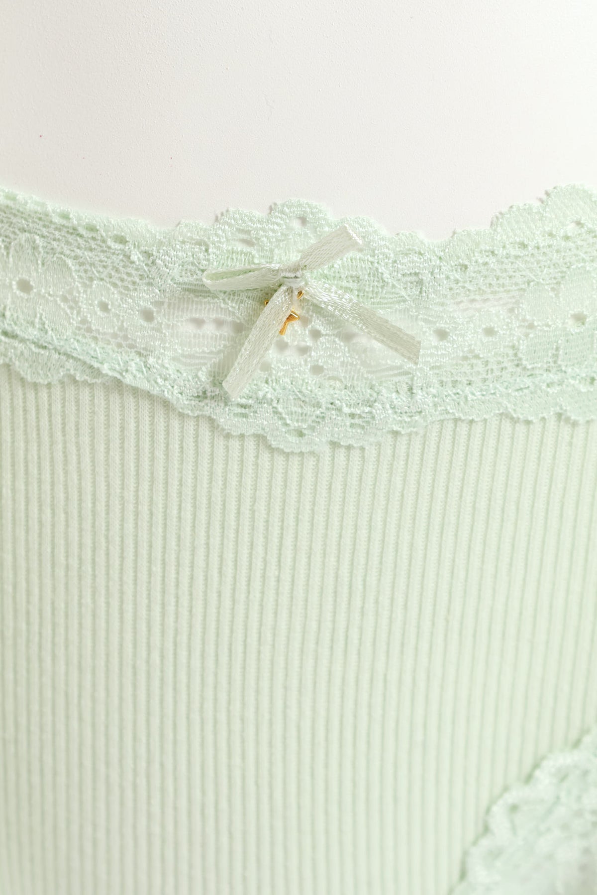 Ribbed Cotton Lace Trim Midi Panty - Sage
