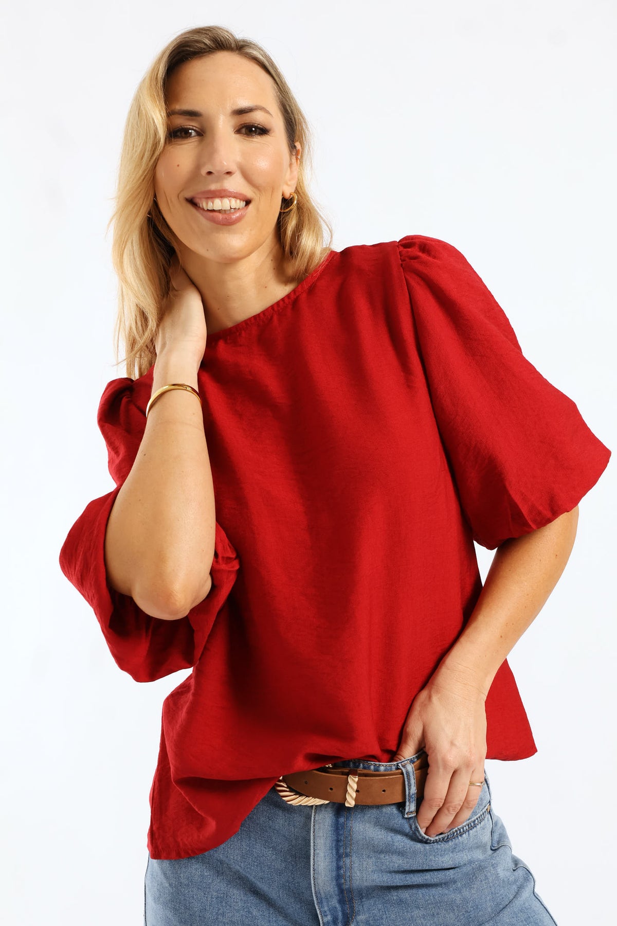 Bubble Sleeve Tie Back Blouse - Rust
