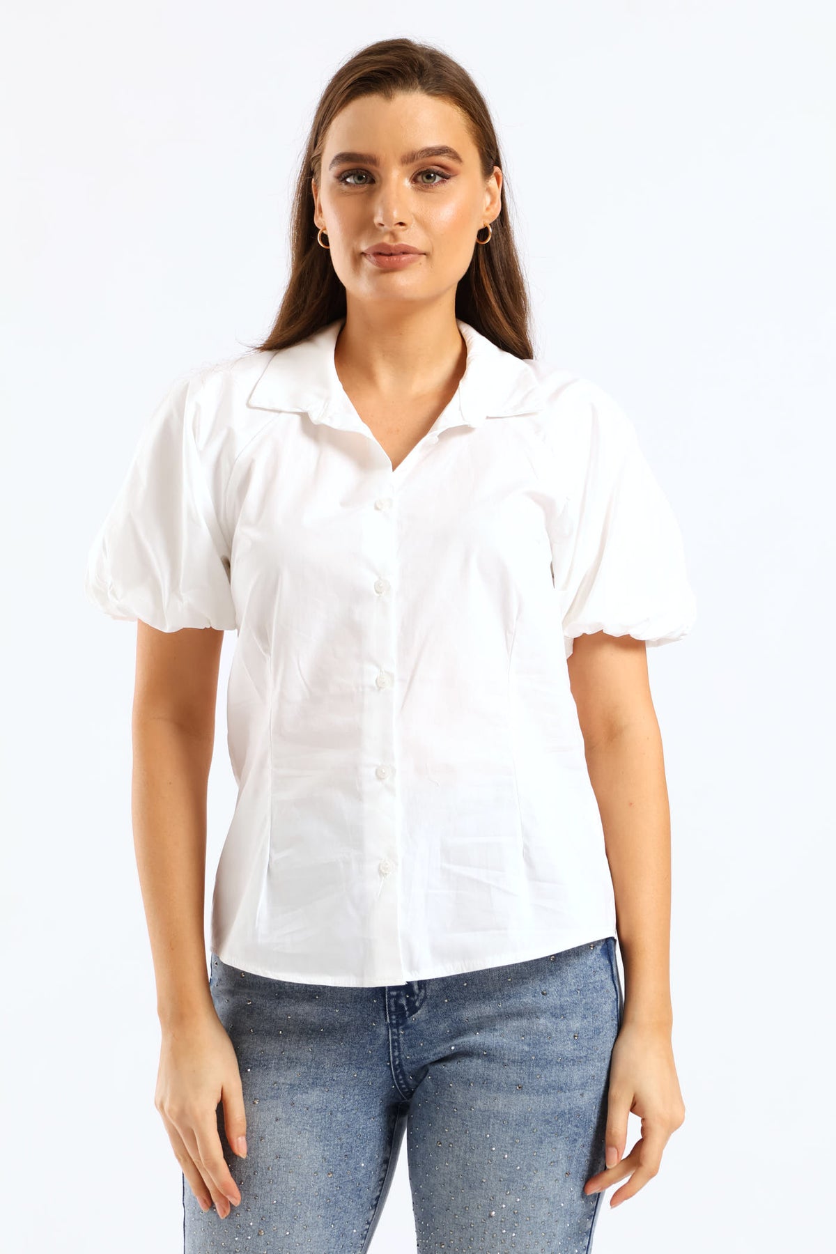 Raglan Bubble Sleeve Button Through Shirt - White