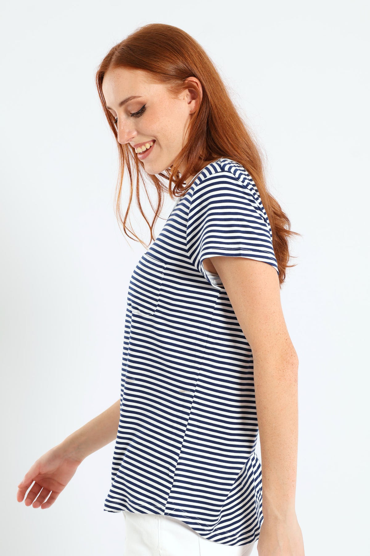 Skinny Stripe Pocket Tee - Navy/White