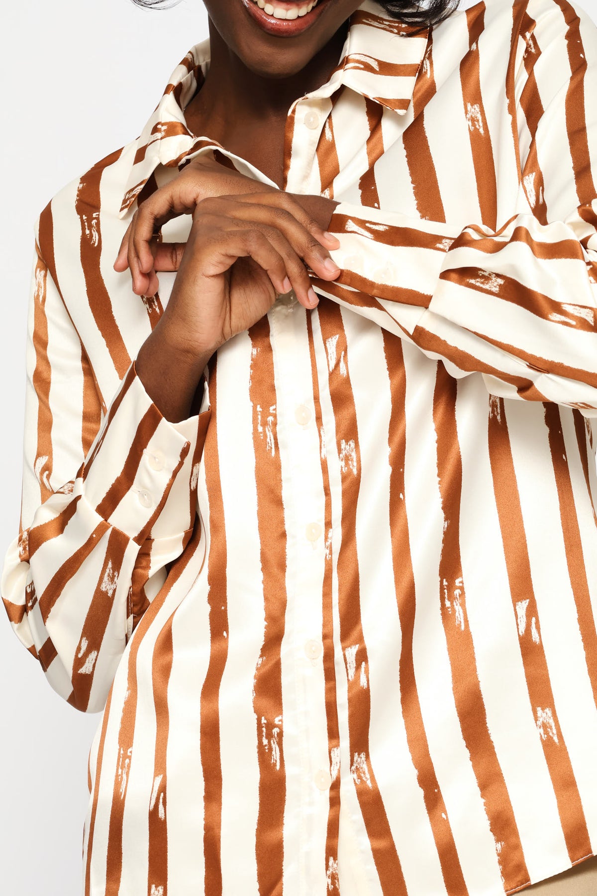 Striped Abstract Satin Shirt - Cream