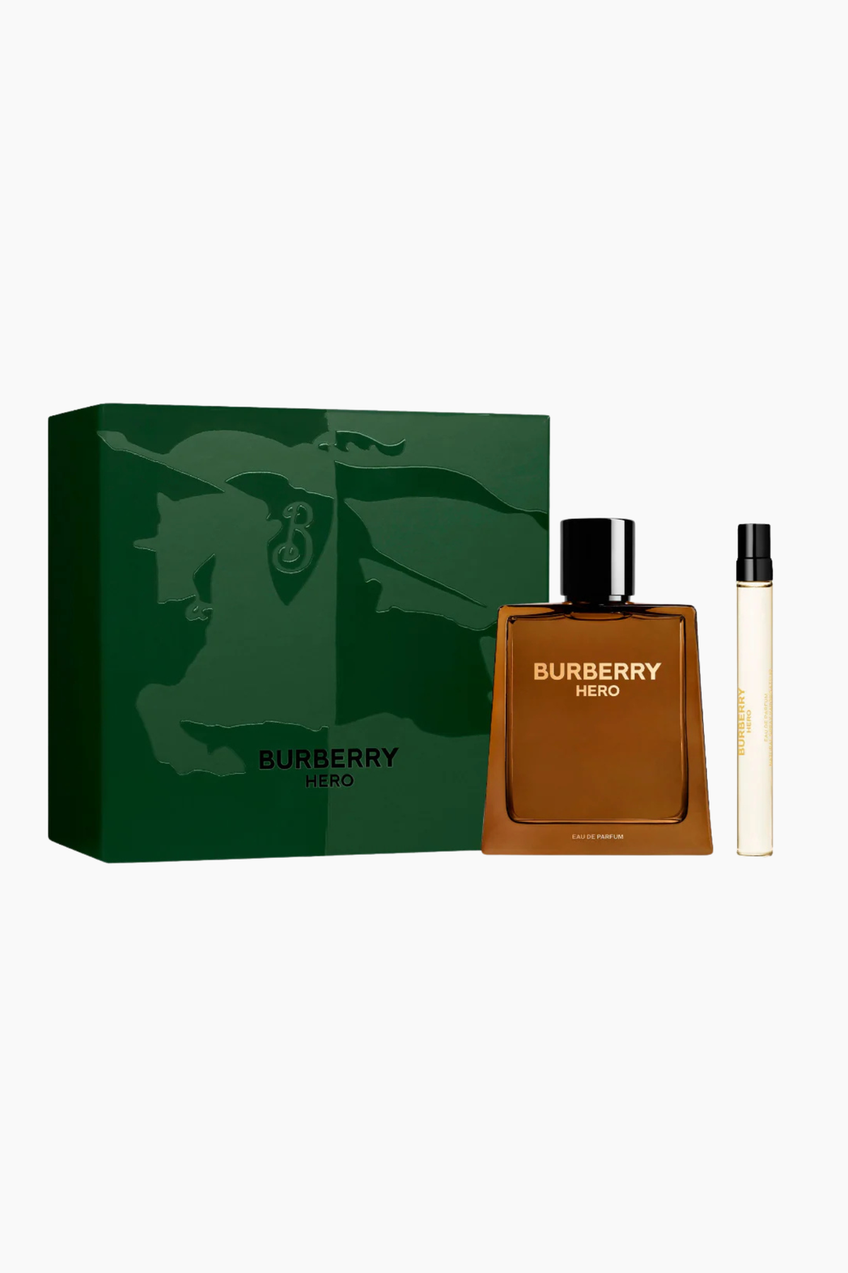 Treat yourself or your loved ones with a Burberry Hero Eau de Parfum gift set, wrapped with the Burberry Equestrian Knight Design – bringing a sense of warmth and tradition to festive gifting.
