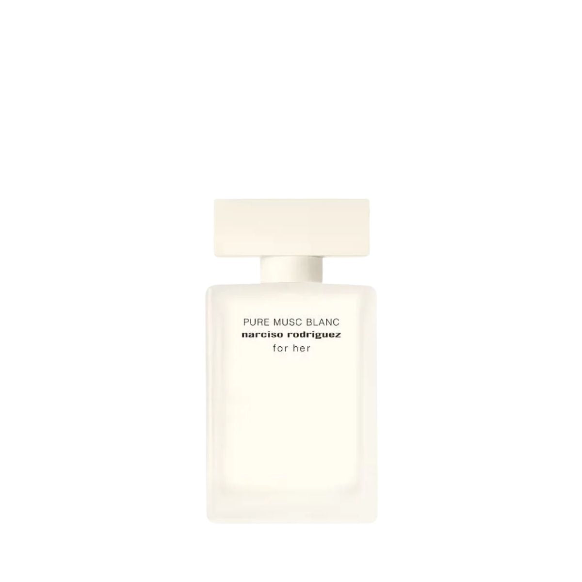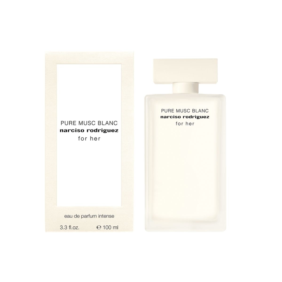 the bottle of for her pure musc blanc eau de parfum intense is an object of refined simplicity, reflecting the quiet intensity of the fragrance within. sharing the pure architectural form and graphic silhouette of the for her collection, the bottle is reimagined in creamy white, cueing the clean yet warm quality of for her pure musc blanc eau de parfum intense.