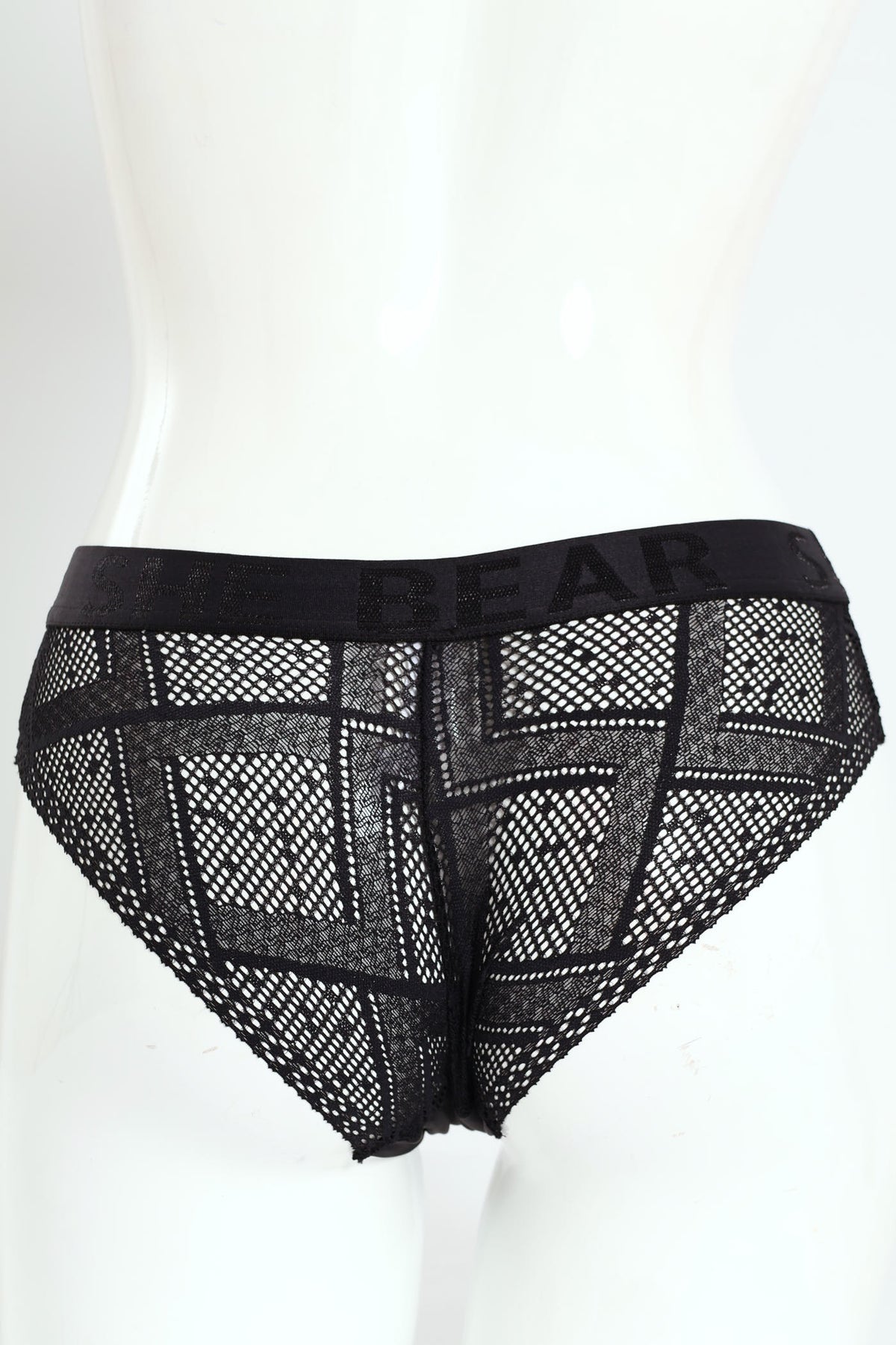 Active Lace Bikini Panties With Jaquard Elastic Band - Black