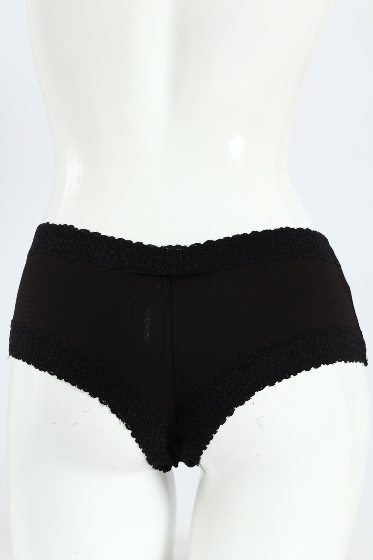 3 Pack Lace Trim Boyleg Panties - Milk/Black/Seashell