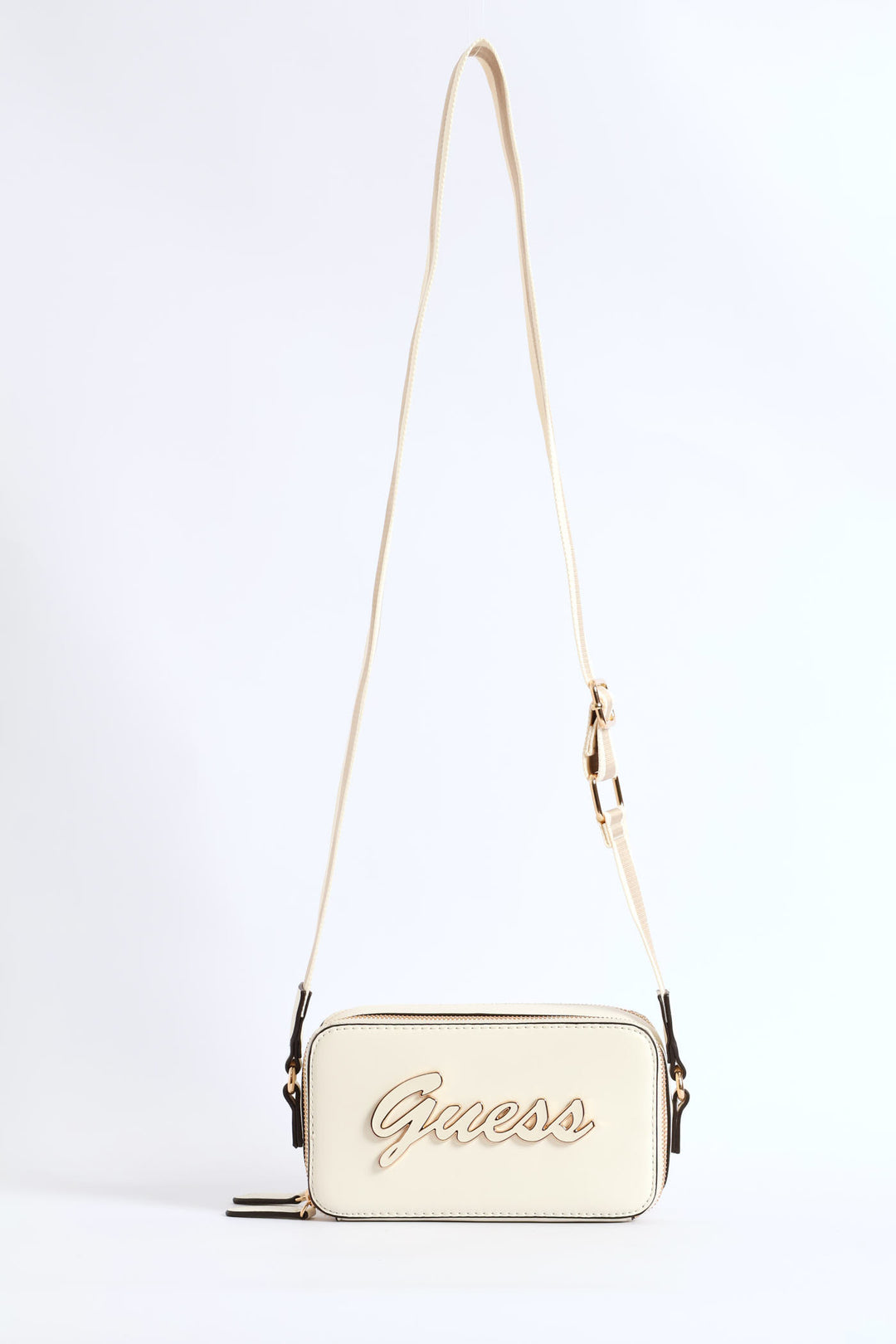 Double Top Zip Webbing Strap Camera Bag - Beige