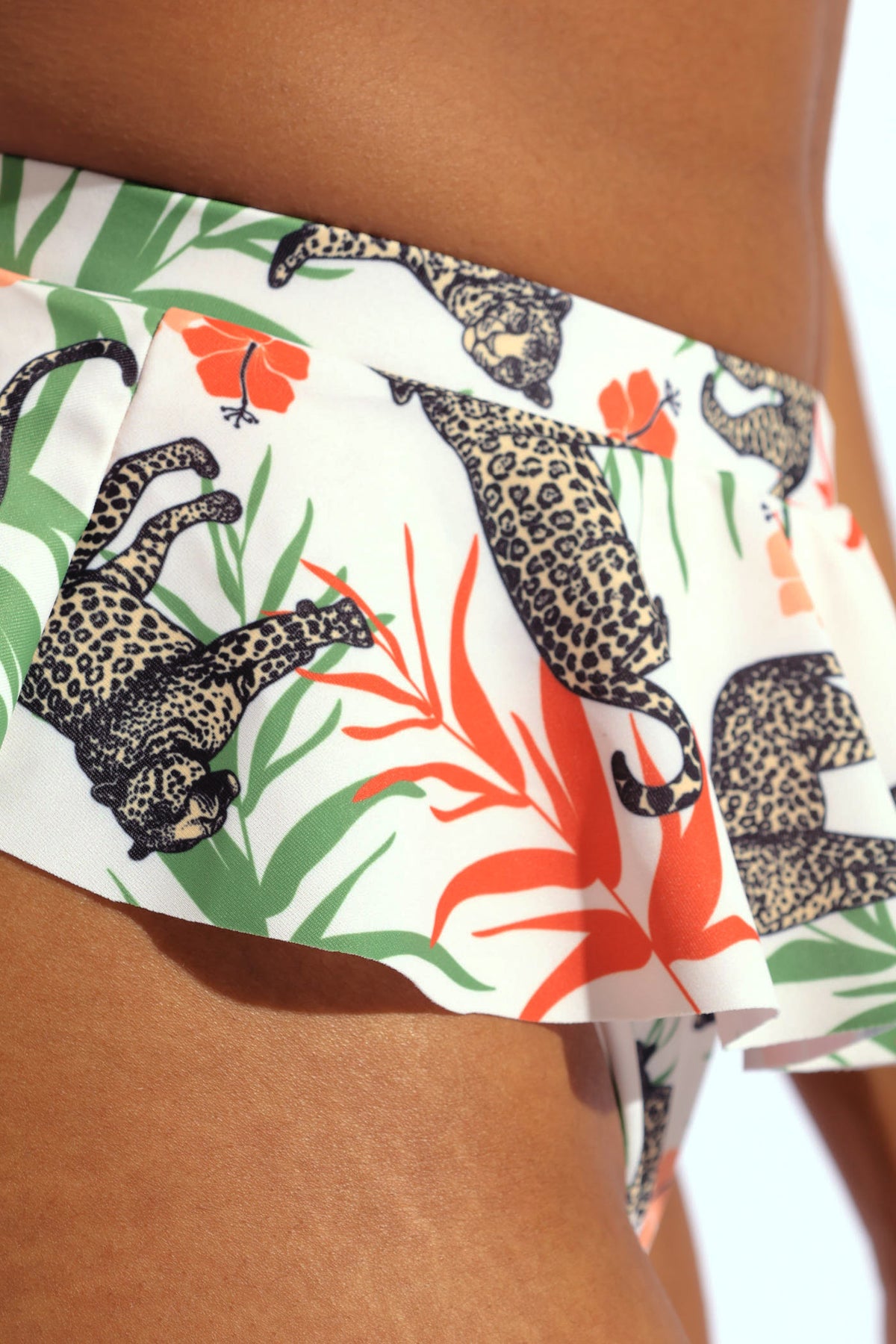 High Waist Cheetah Print Frill Bikini Bottom - Multi