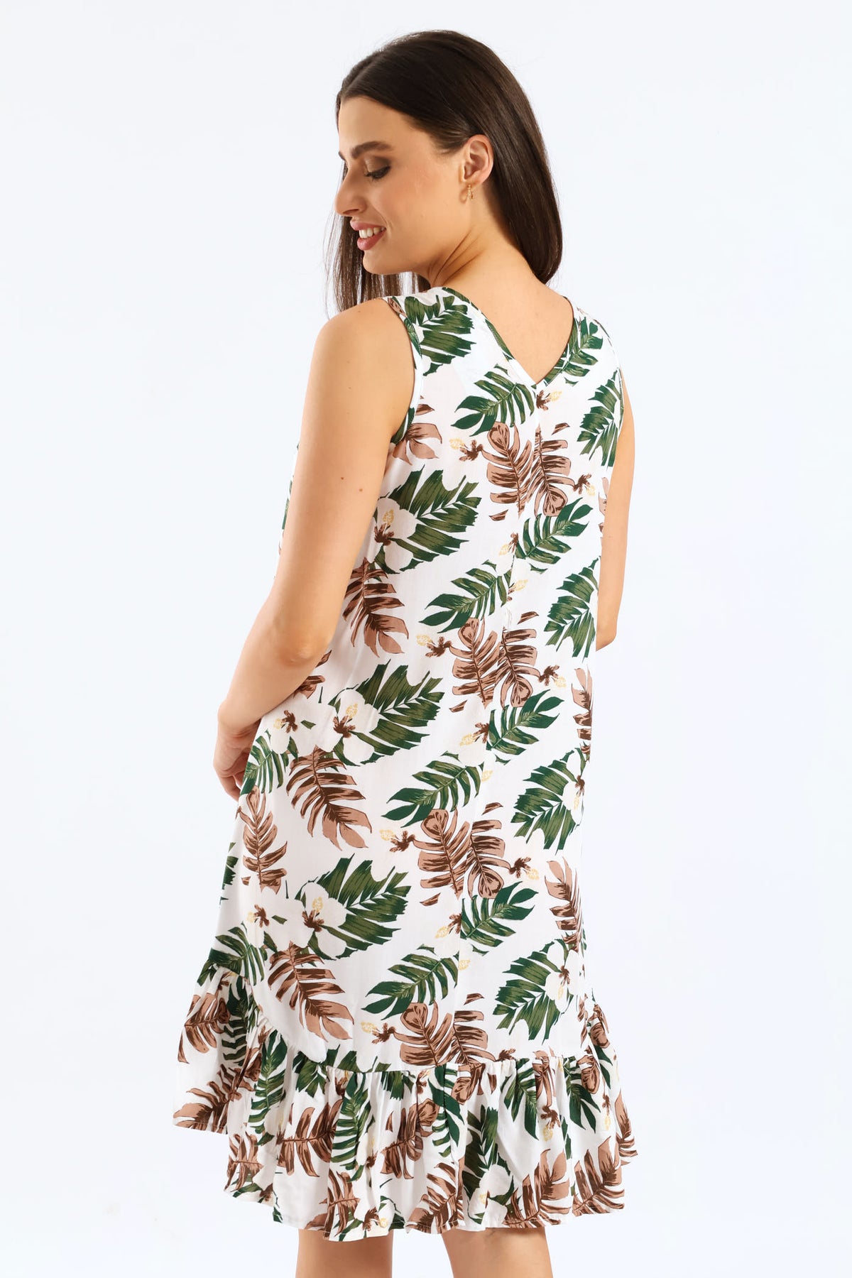Frill Hem Hi-Lo Printed Shift Mini Dress - White