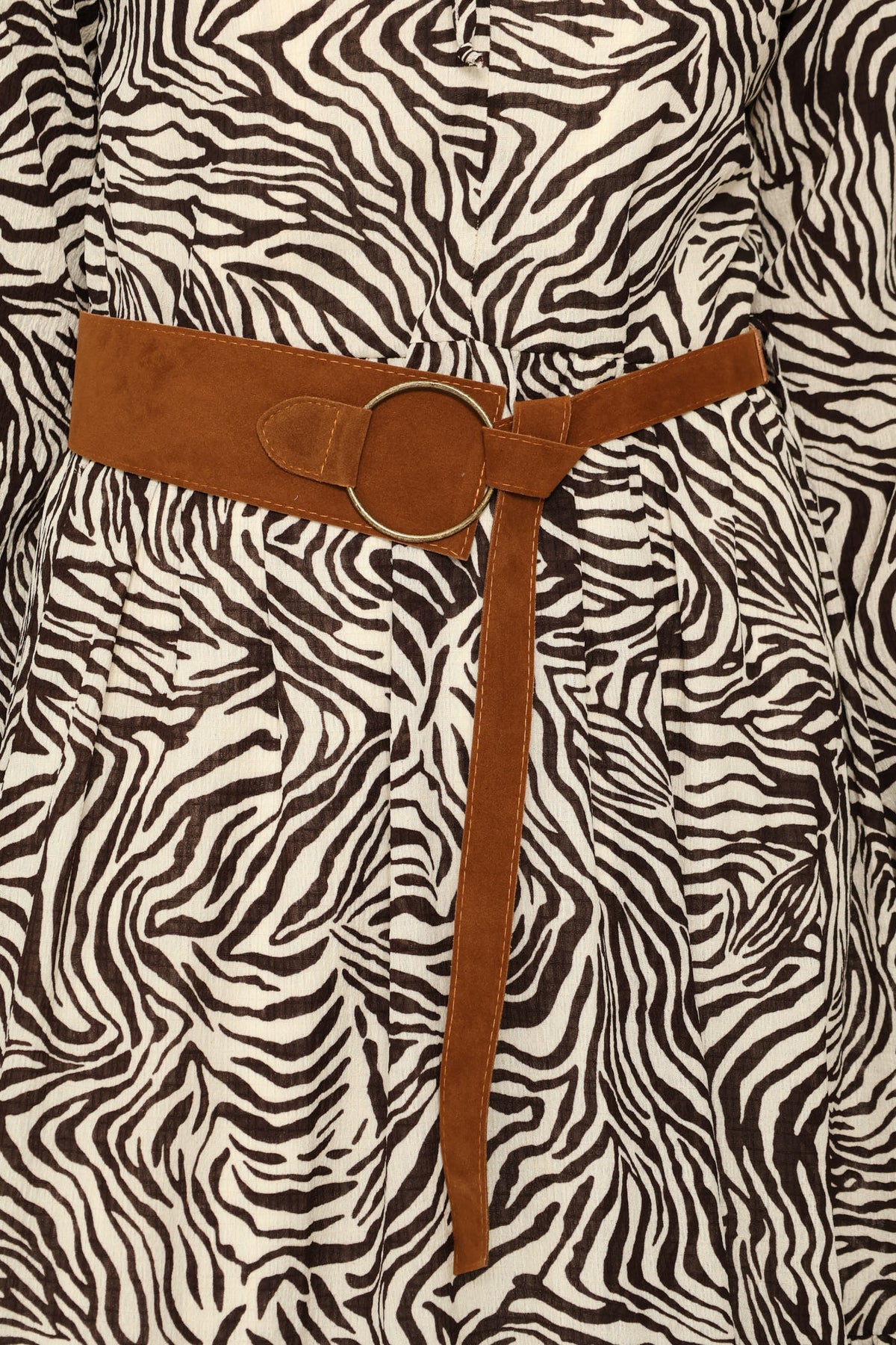 Long Sleeve Belted Boho Tiered Maxi Dress - White/Chocolate