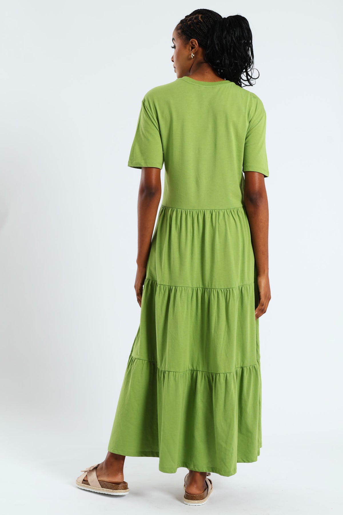 Rib Neck Tiered Cotton Midaxi Dress - Chartreuse