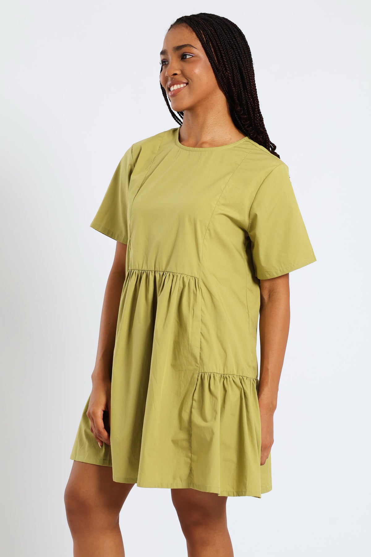 Short Sleeve Panelled Tie Back Mini Dress - Green
