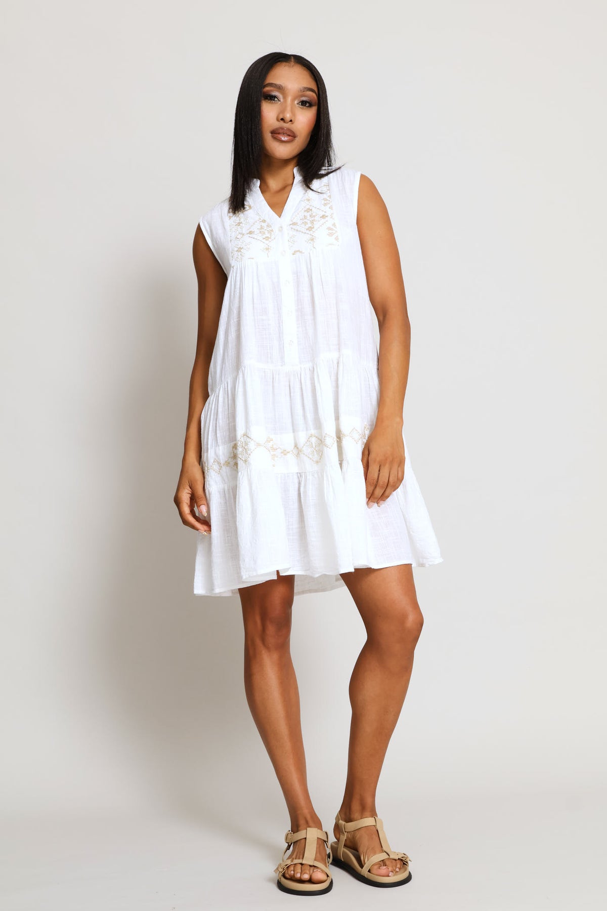 Sleeveless Key Hole Tiered A-Line Midi Dress - Off White