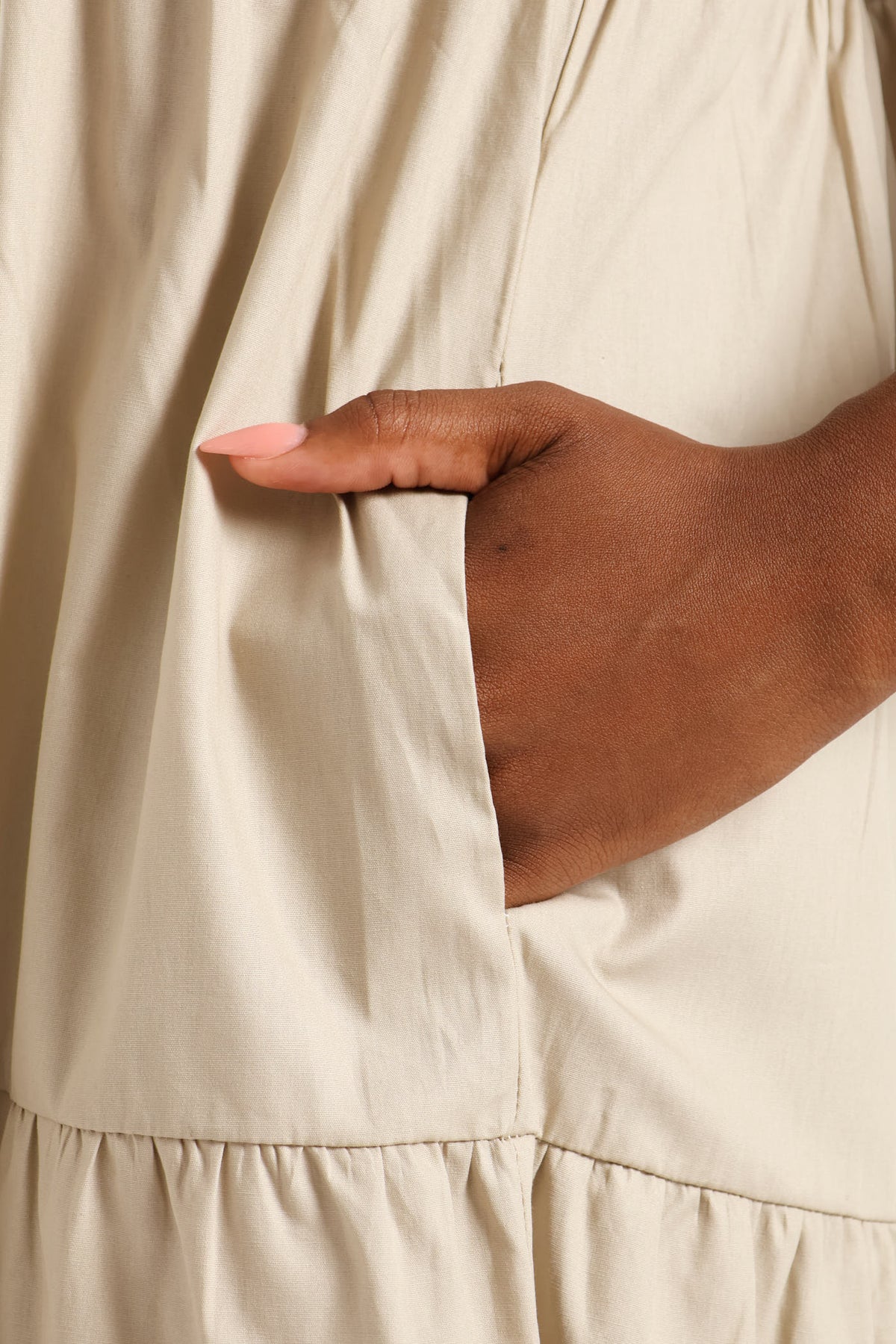 Strappy Tiered Poplin Maxi Dress - Taupe