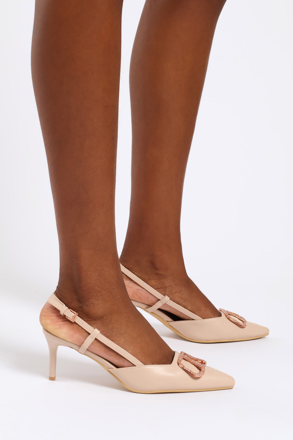 Square Vamp Diamante Trim Slingback Heel - Blush