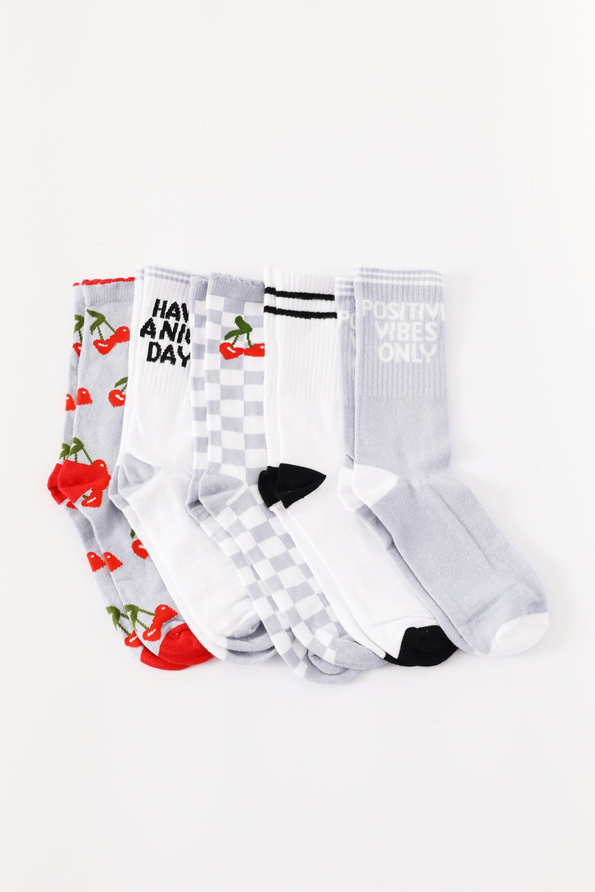 5 Pack Cherry Check Crew Fashion Socks - White/Blue