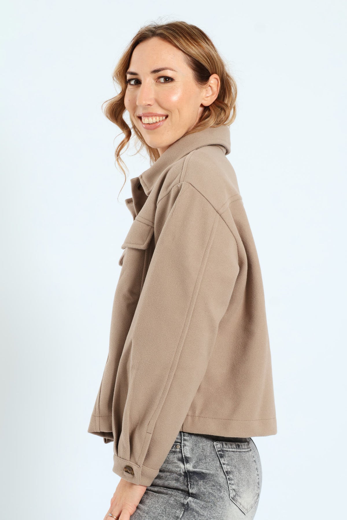 Utility Pocket Melton Trucker Jacket - Oatmeal Melange