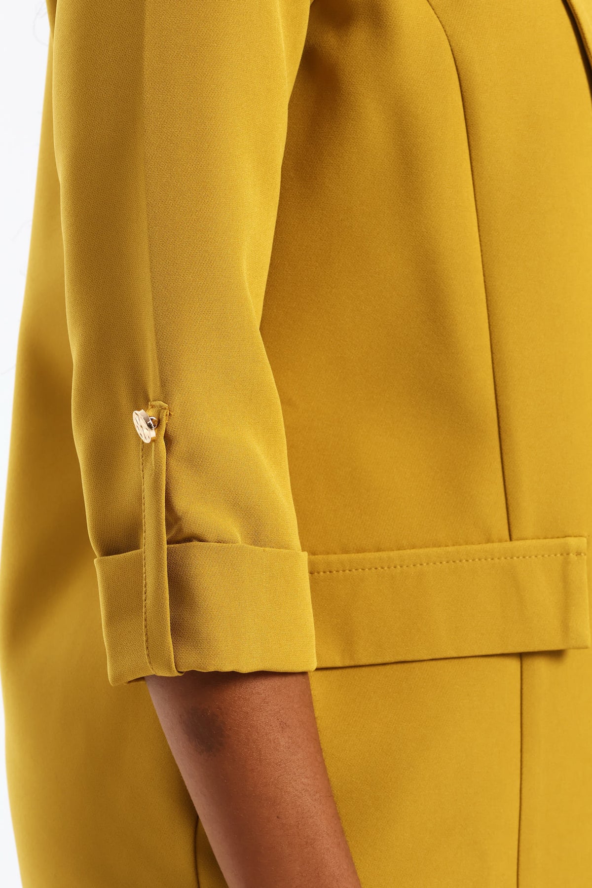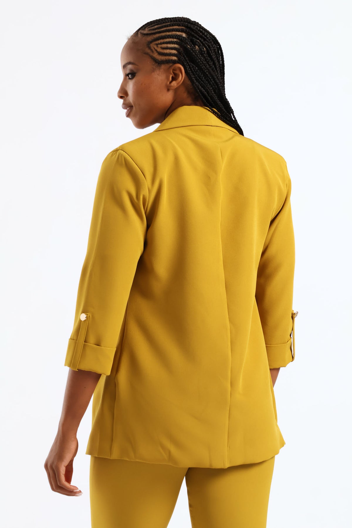 Shawl Collar Turn Up Sleeve Blazer - Chartreuse