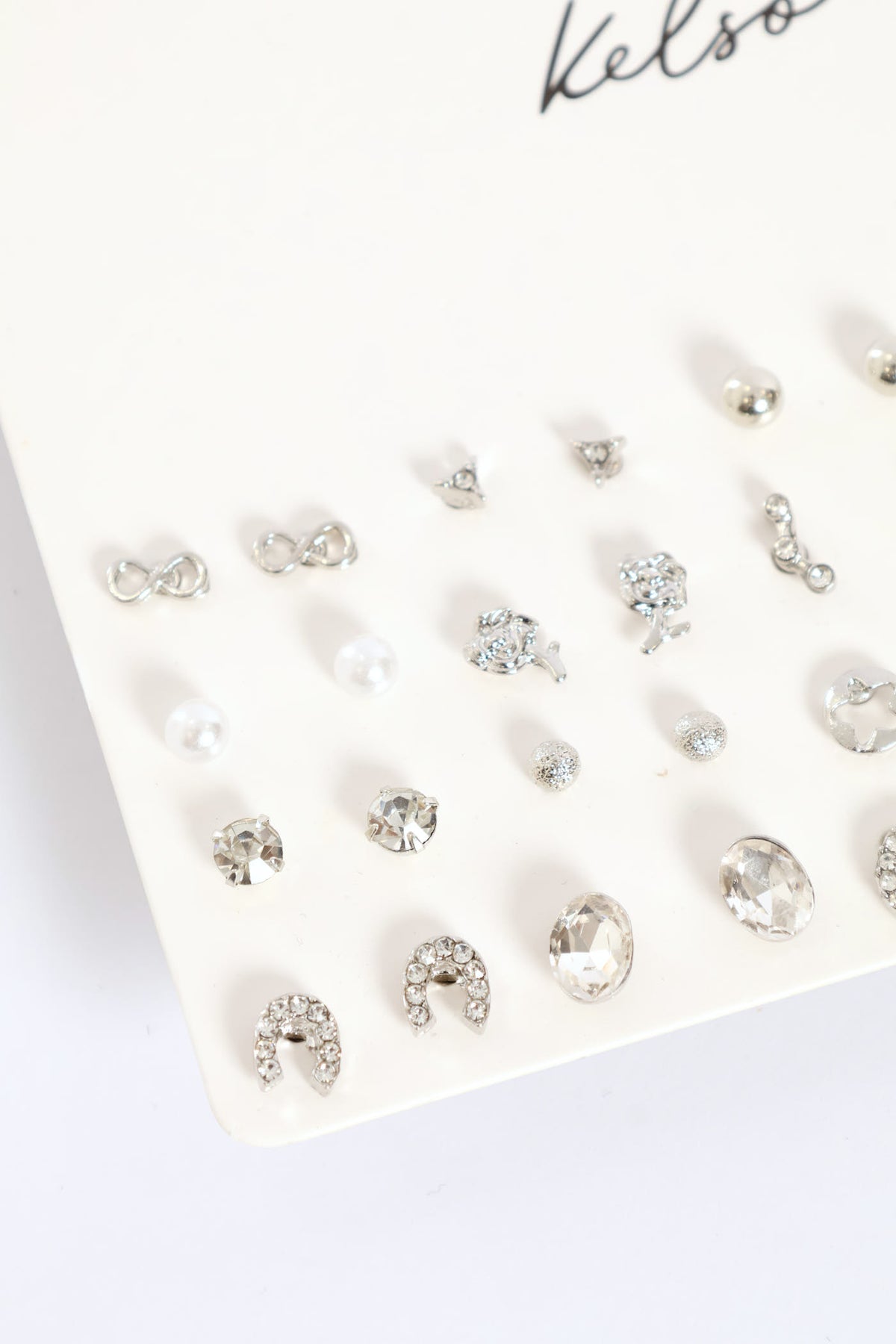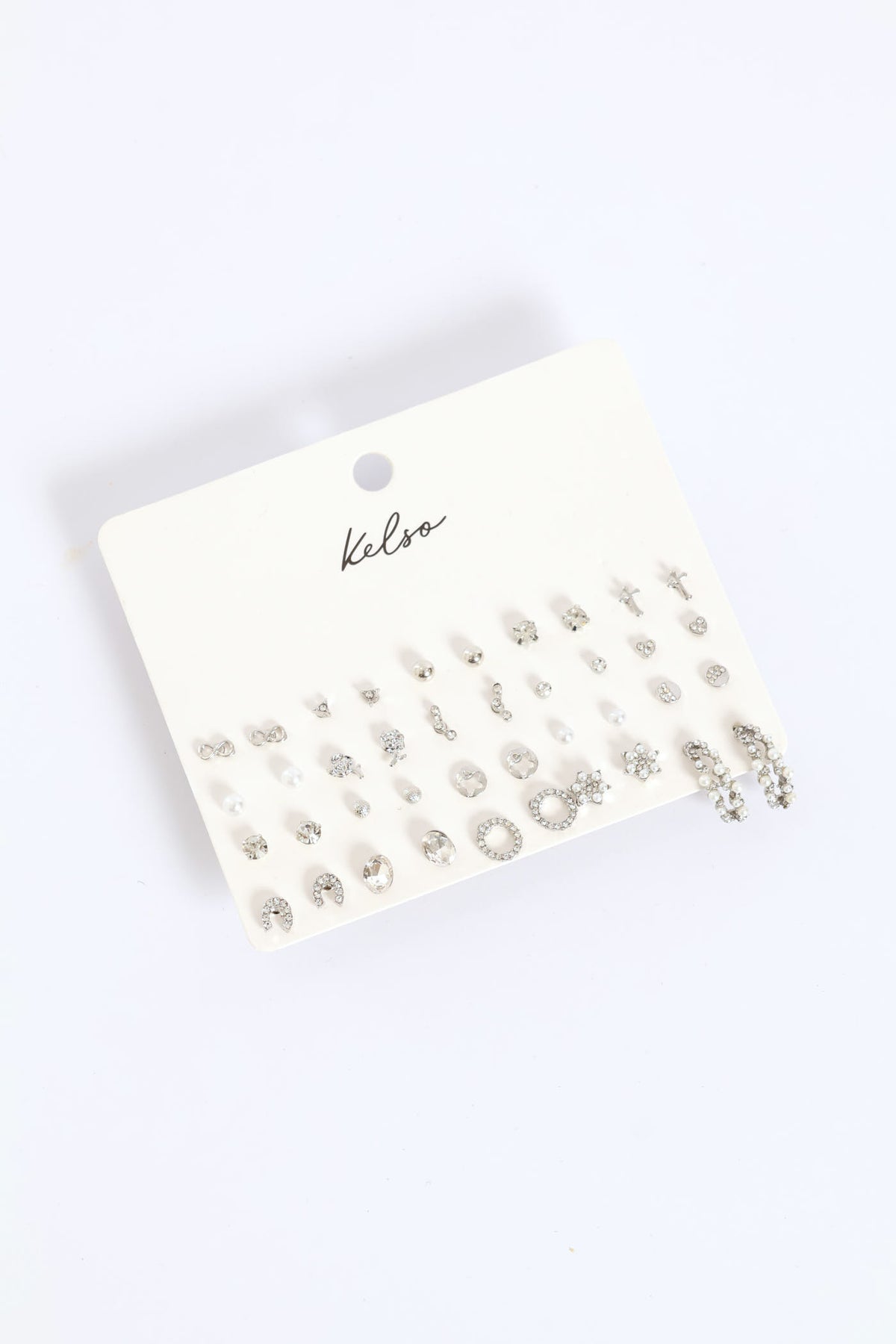 20 Pack Jewel Pearl & Bead Star Earrings - Silver
