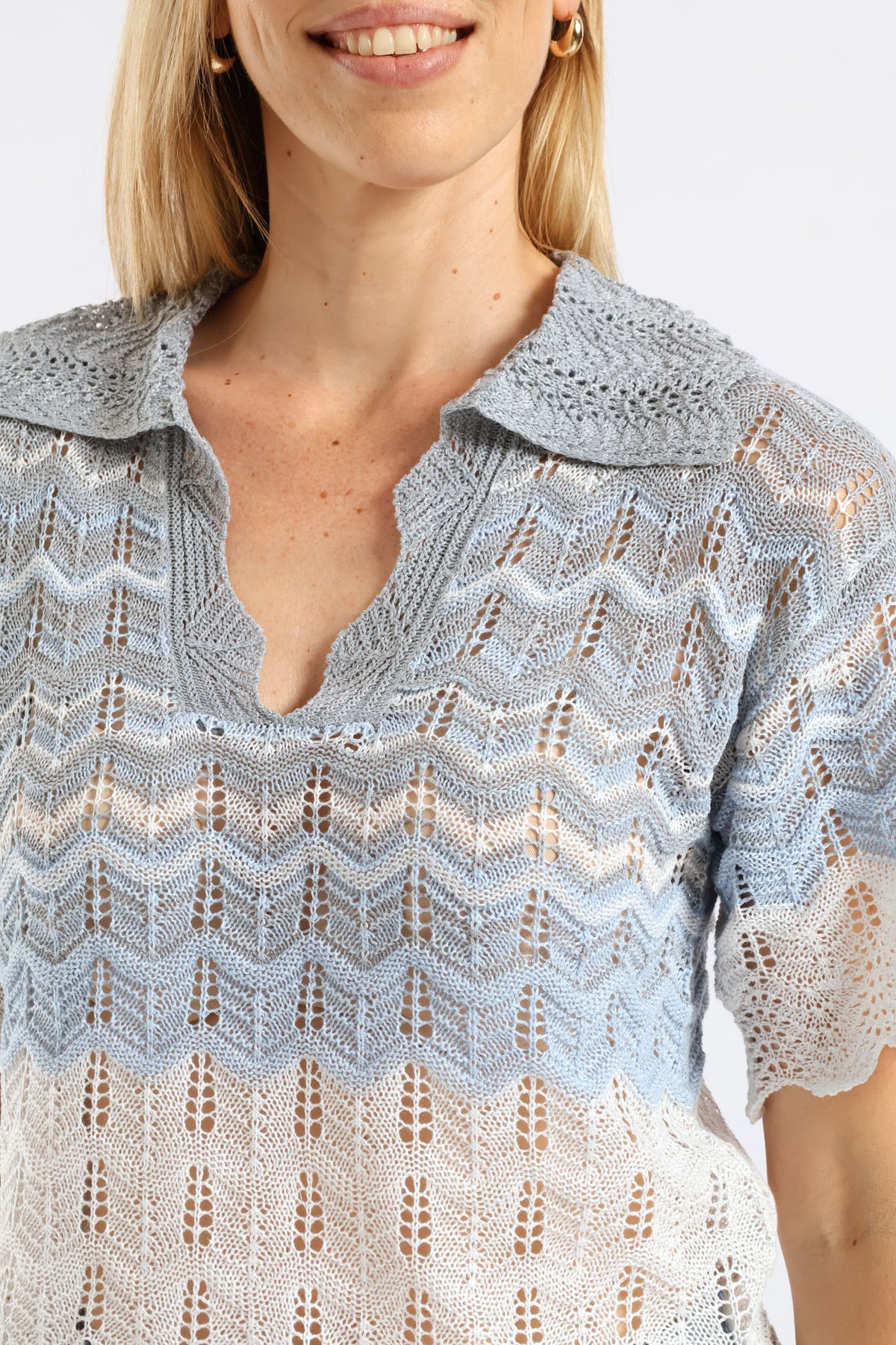 Lurex Collared Ombre Knitwear Top - Beige/Blue