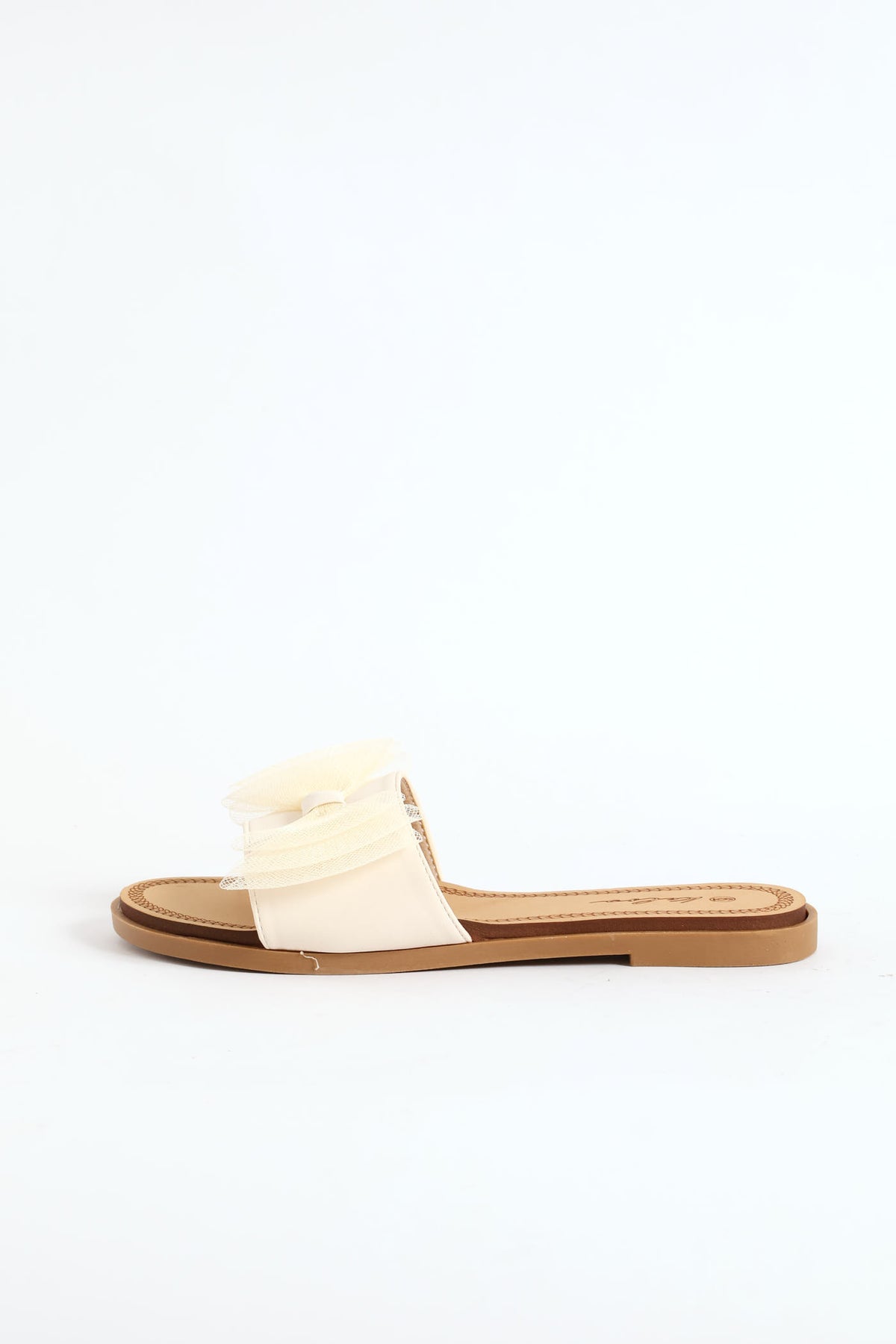 Mesh Bow Upper On Comfort Outsole Sandal - Natural