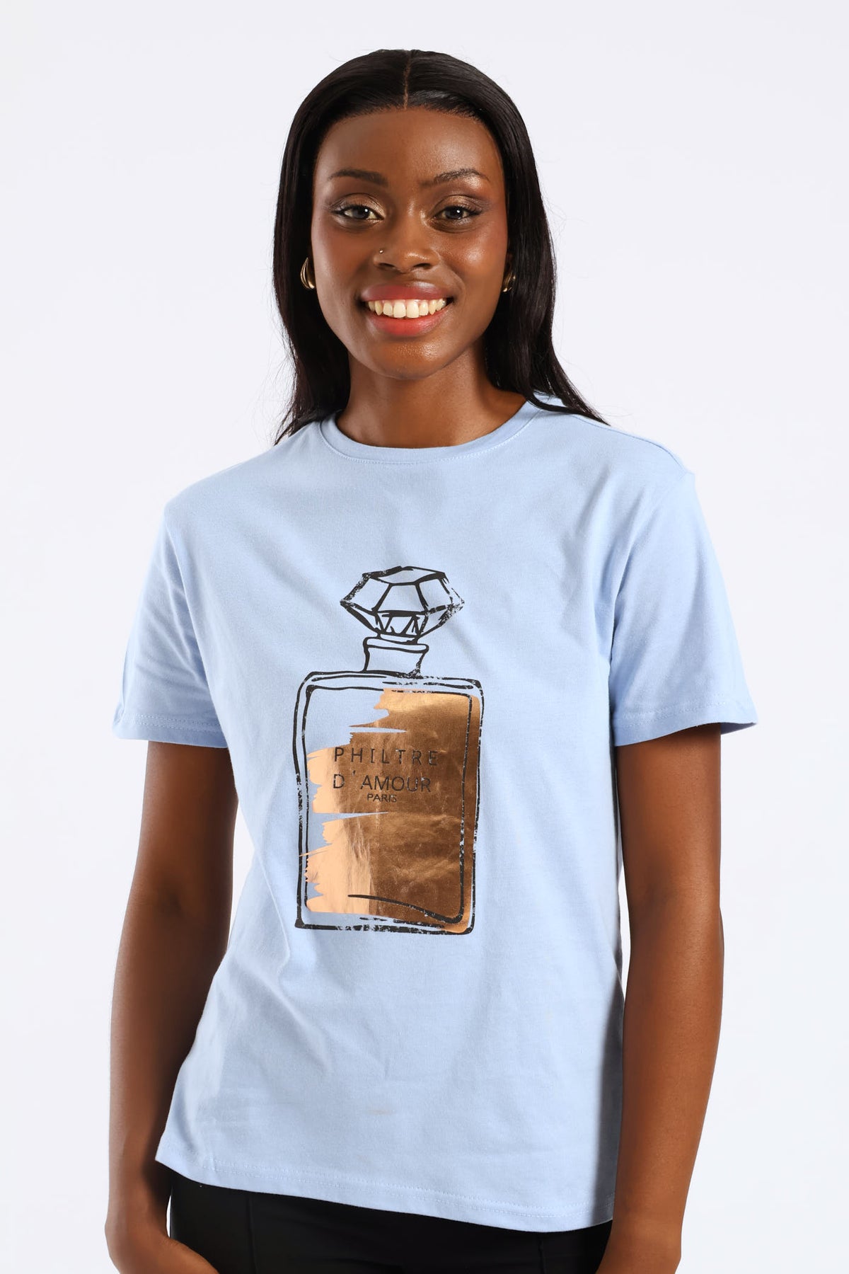 Perfume Bottle Foil Tee - Sky Blue