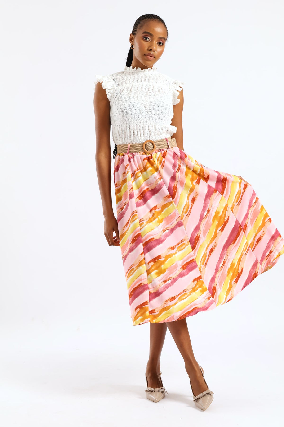 Rafia Belted Pleated Tie-Dye Midi Skirt - Blush