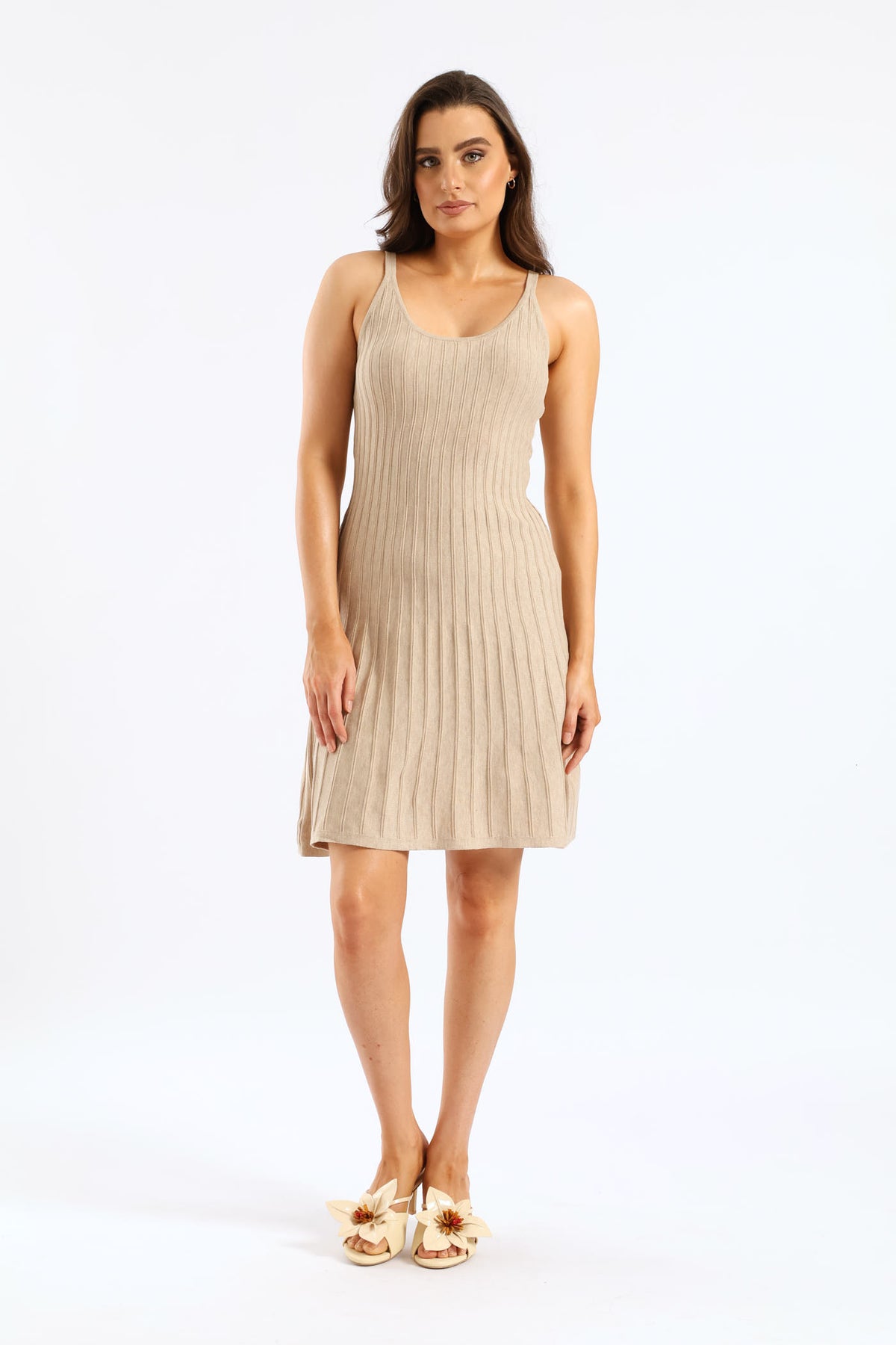 Scoop Neck Panelled Knitwear Skater Dress - Stone