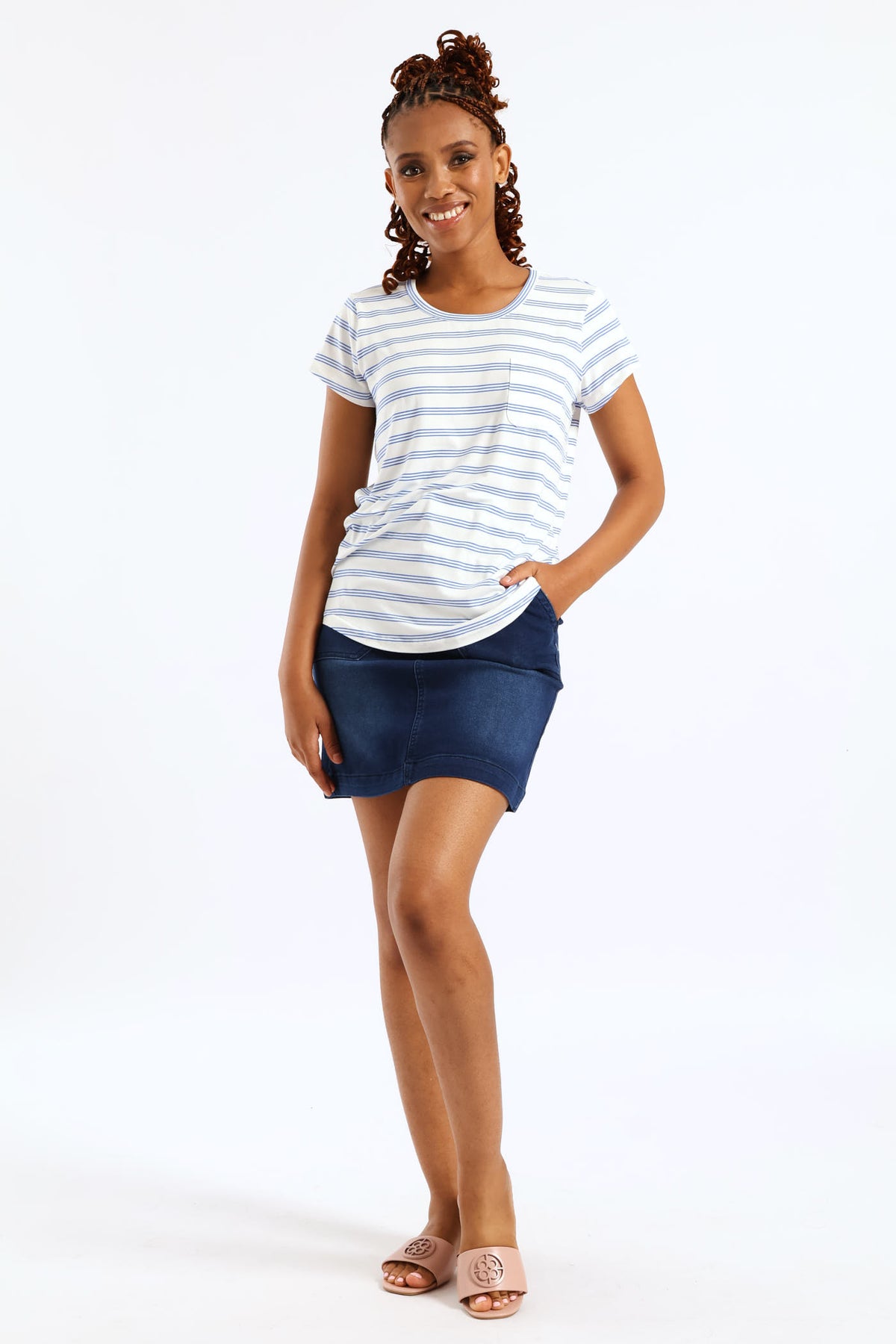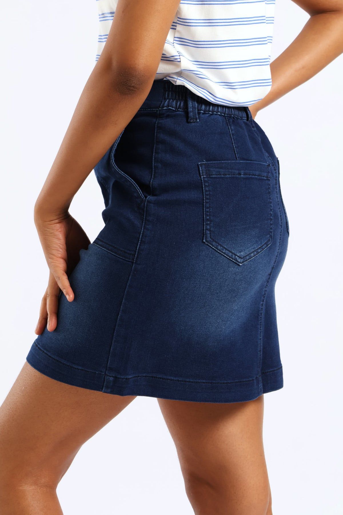 Utility Pocket Knit Denim Mini Skirt - Dark Wash
