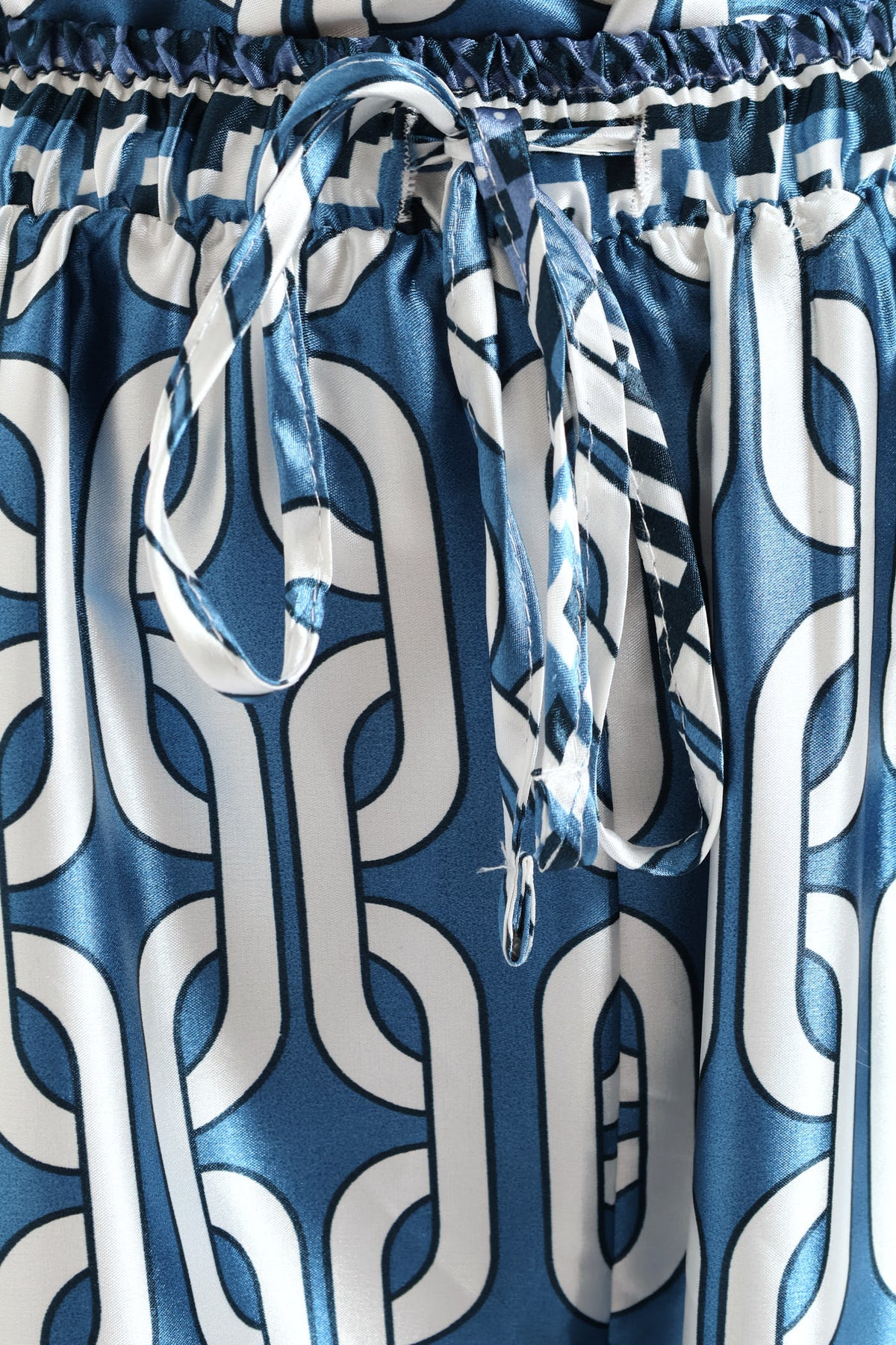 Pull-On Toggle Paperbag Wideleg Satin Pant - White/Blue