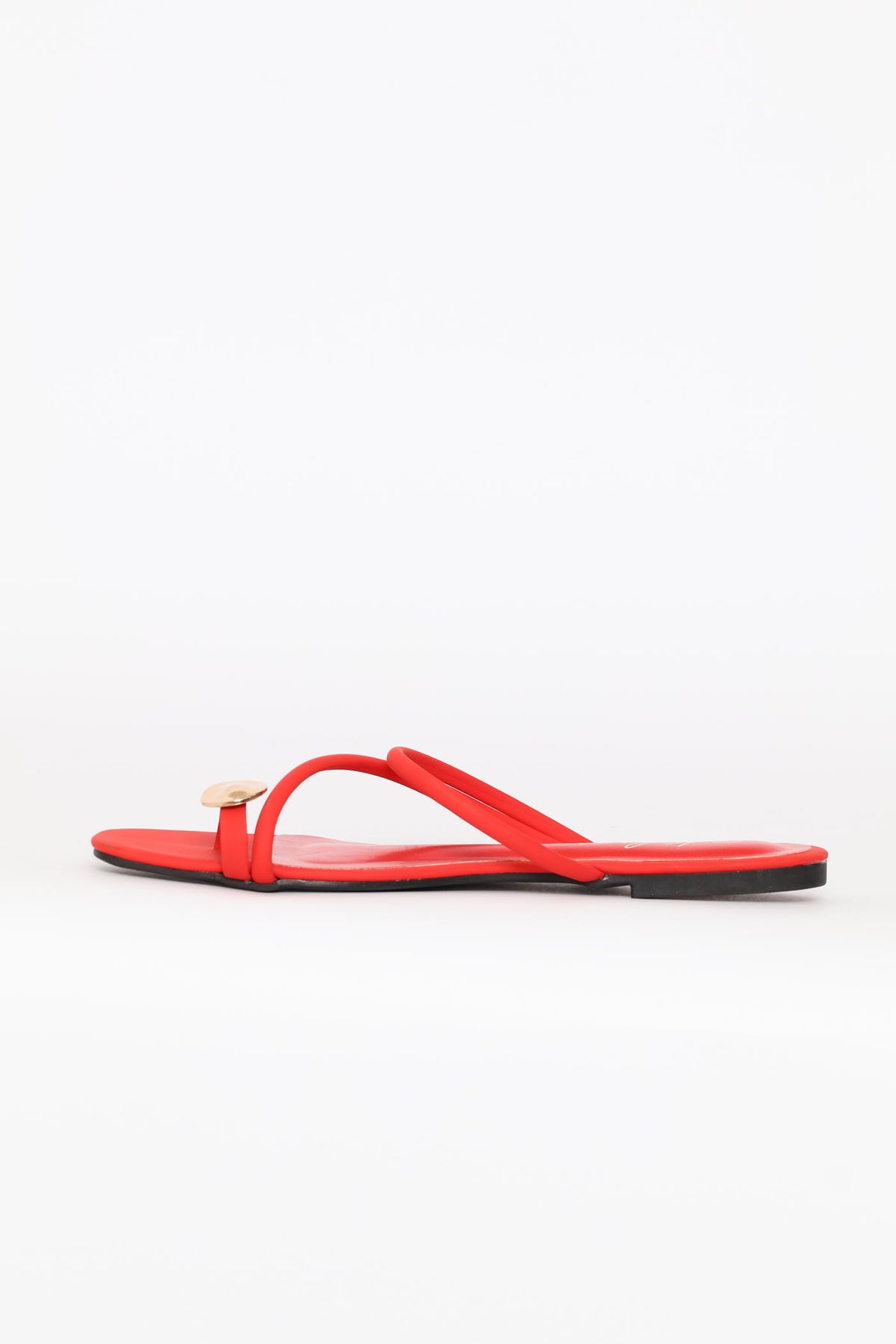 Metal Circle Trim Toe Post Mule Sandal - Red