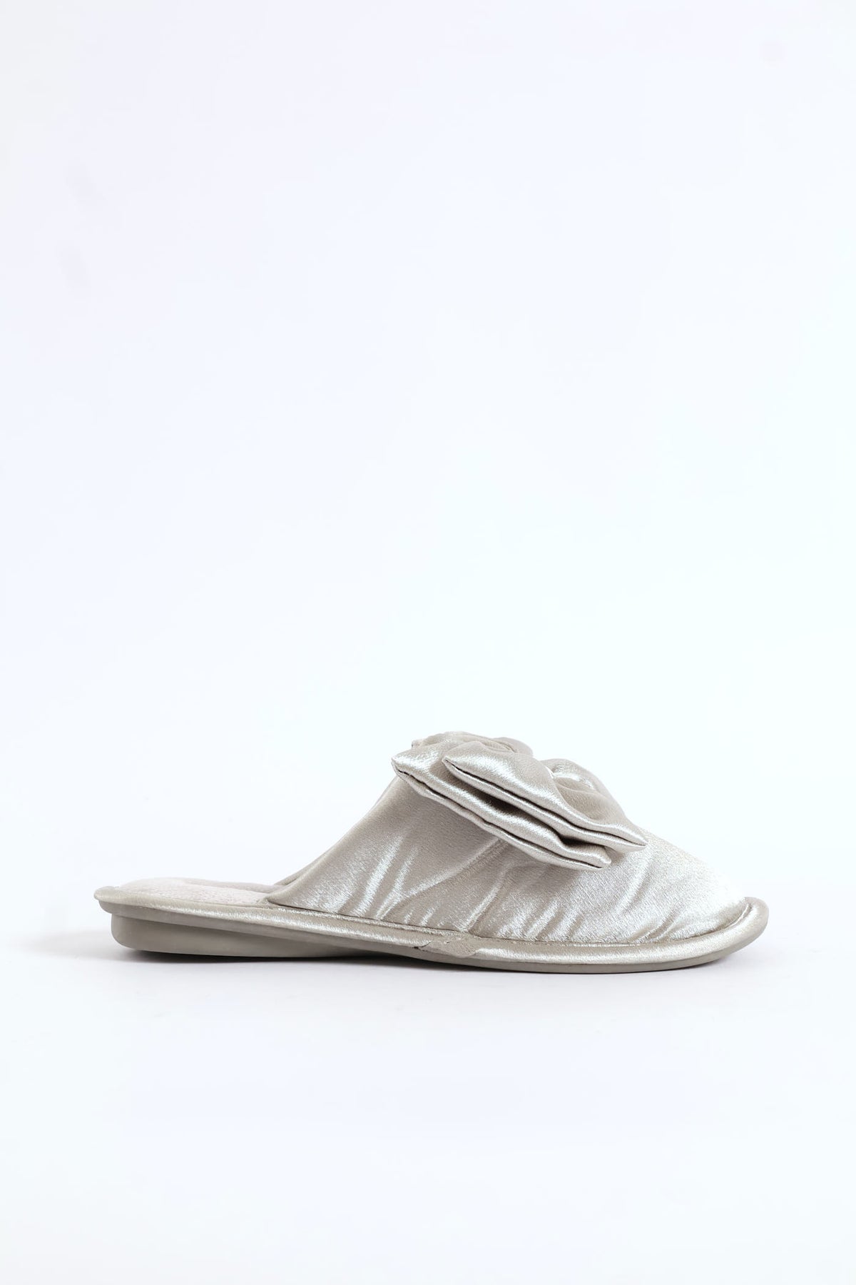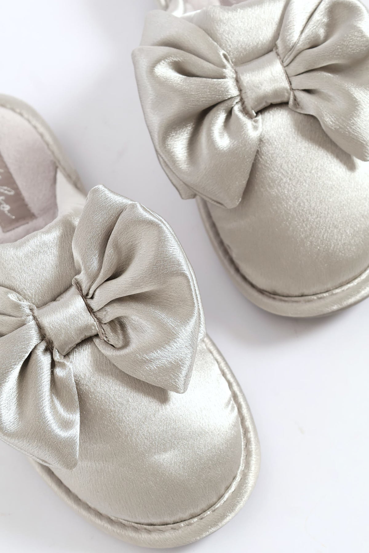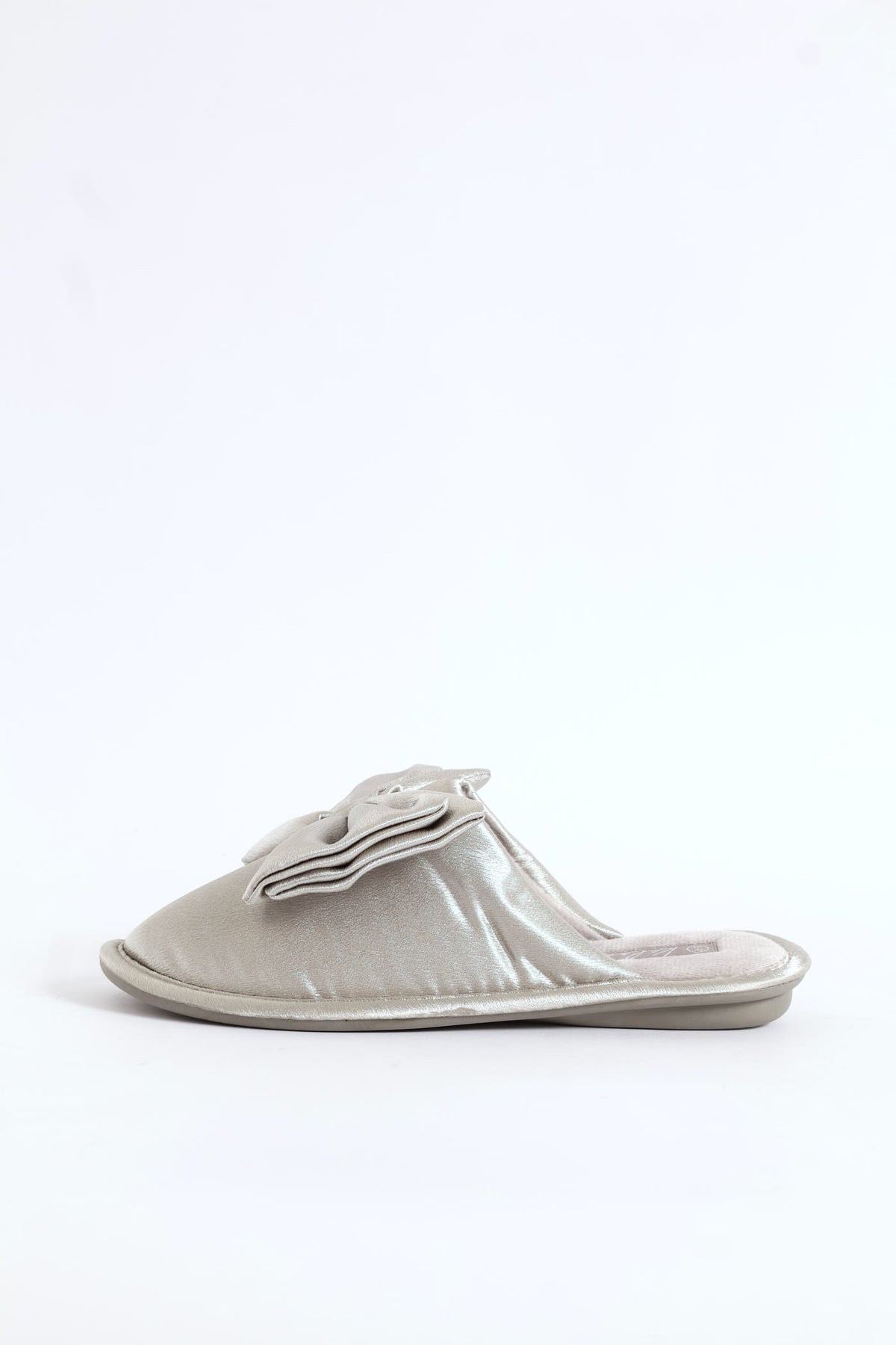 Bow Detail Satin Slipper - Grey