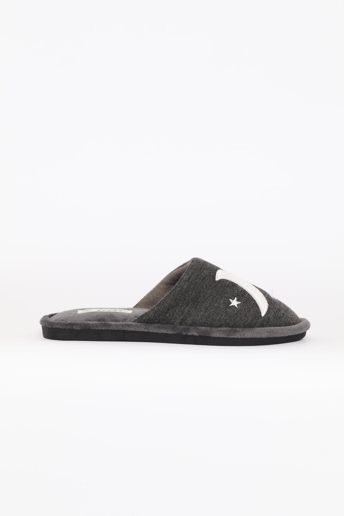 Embroidered Moon & Star Slipper - Charcoal