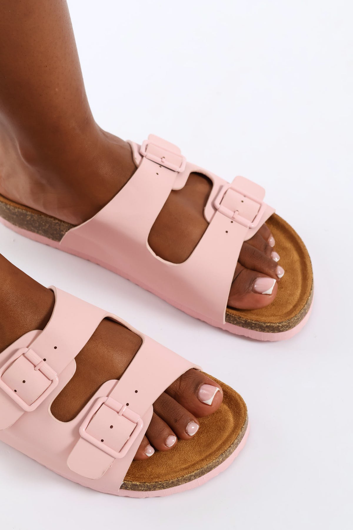 Monotone Buckle Double Band Slide - Pink