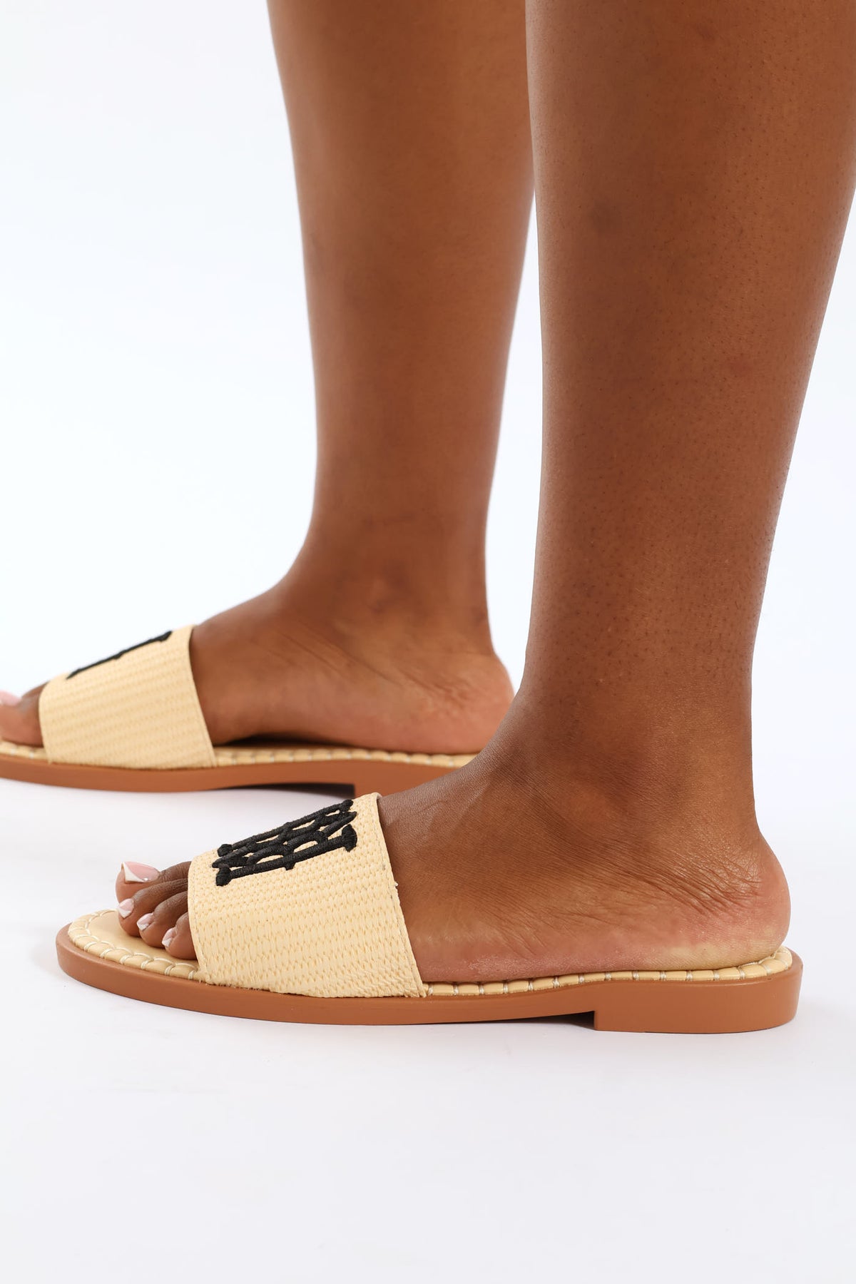 Whipstitch Detail Single Band Sandal - Natural