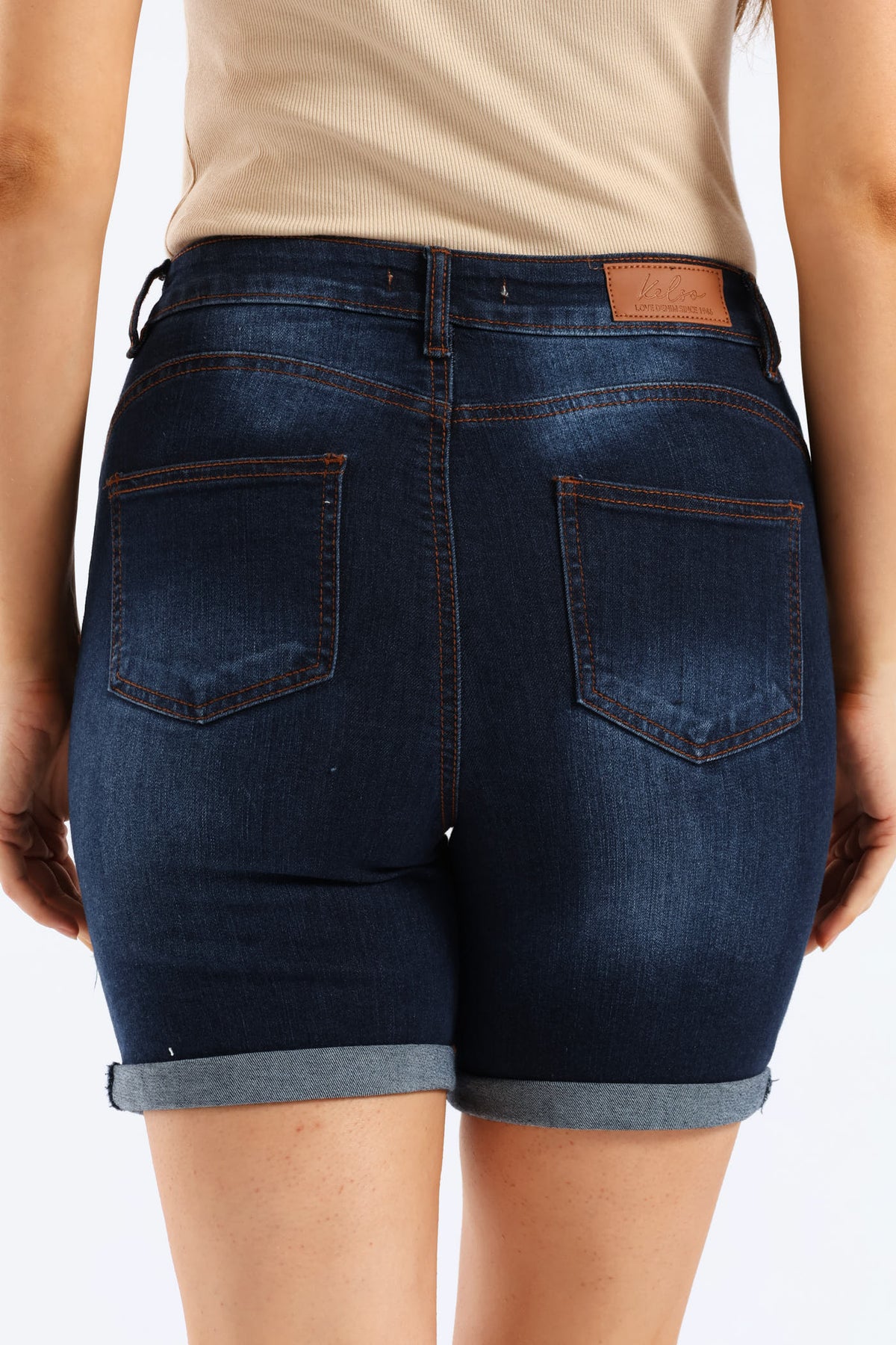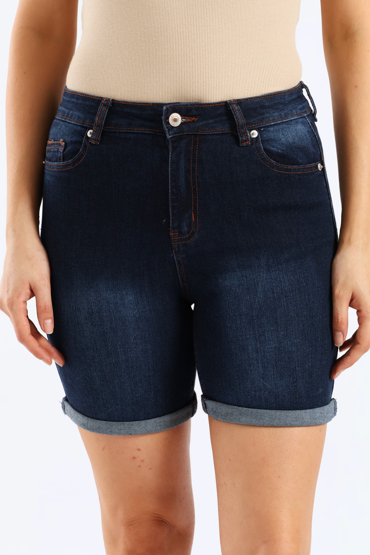 Classic Roll Hem Mid Thigh Supersoft Denim Short - Ink