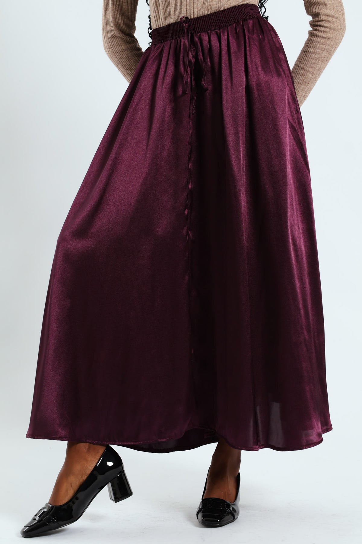 Pull-On Satin Twil Midaxi Skirt - Plum Noir