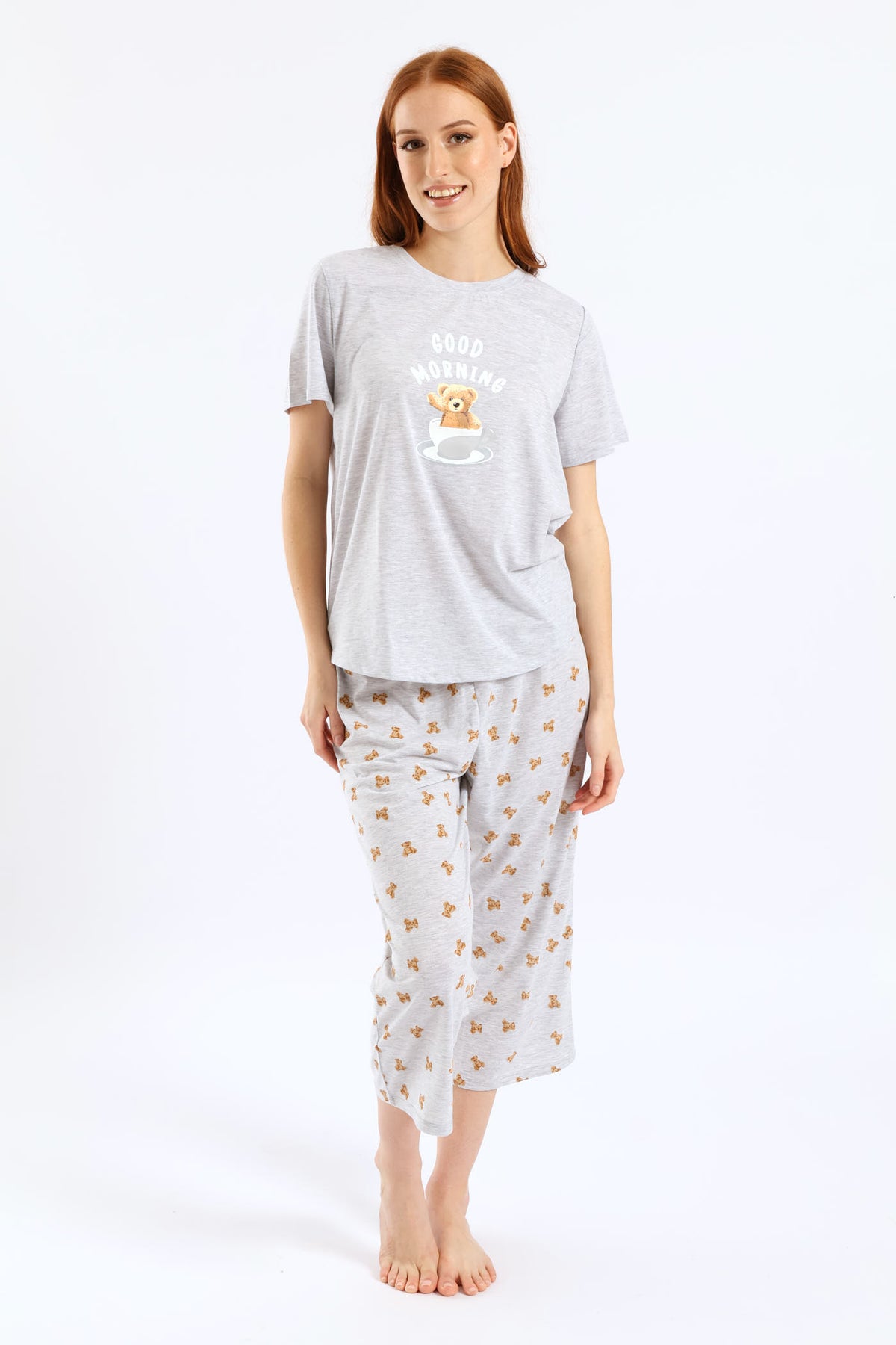 Bear Knit Capri Pants PJ Set - Grey Melange