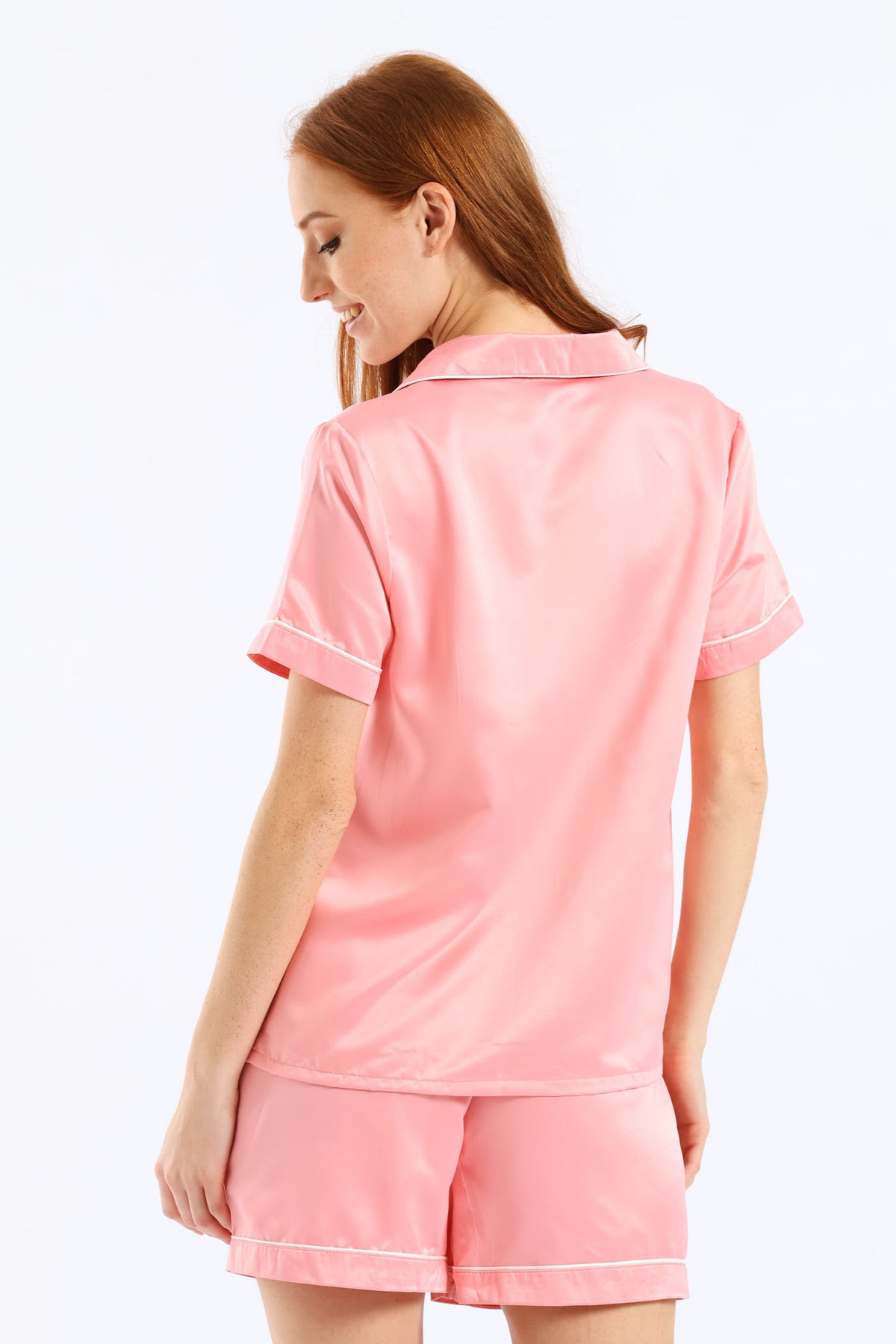 Button Through & Satin Short Set - Salmon