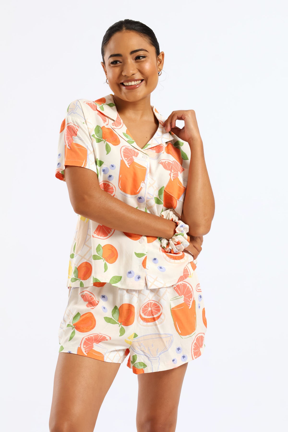 Button Through Woven Viscose Stripe Short Set - Multi