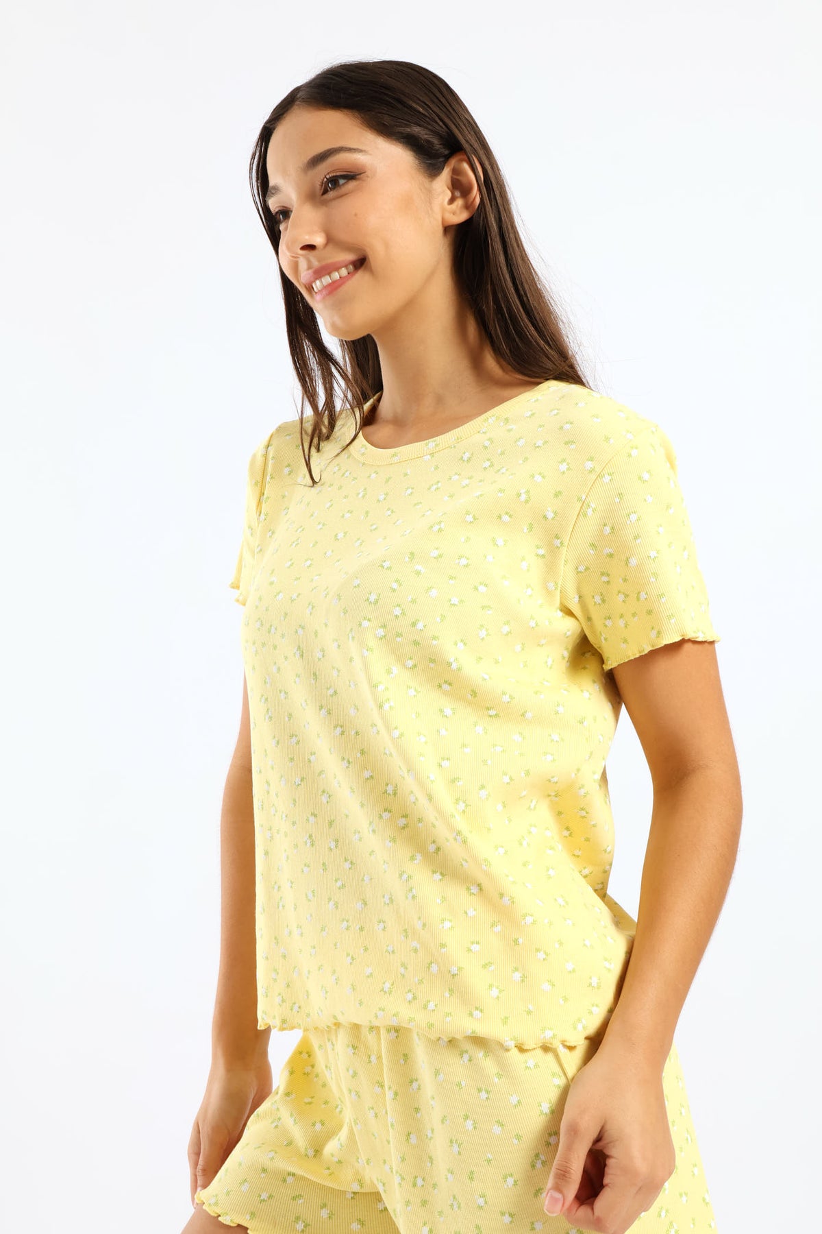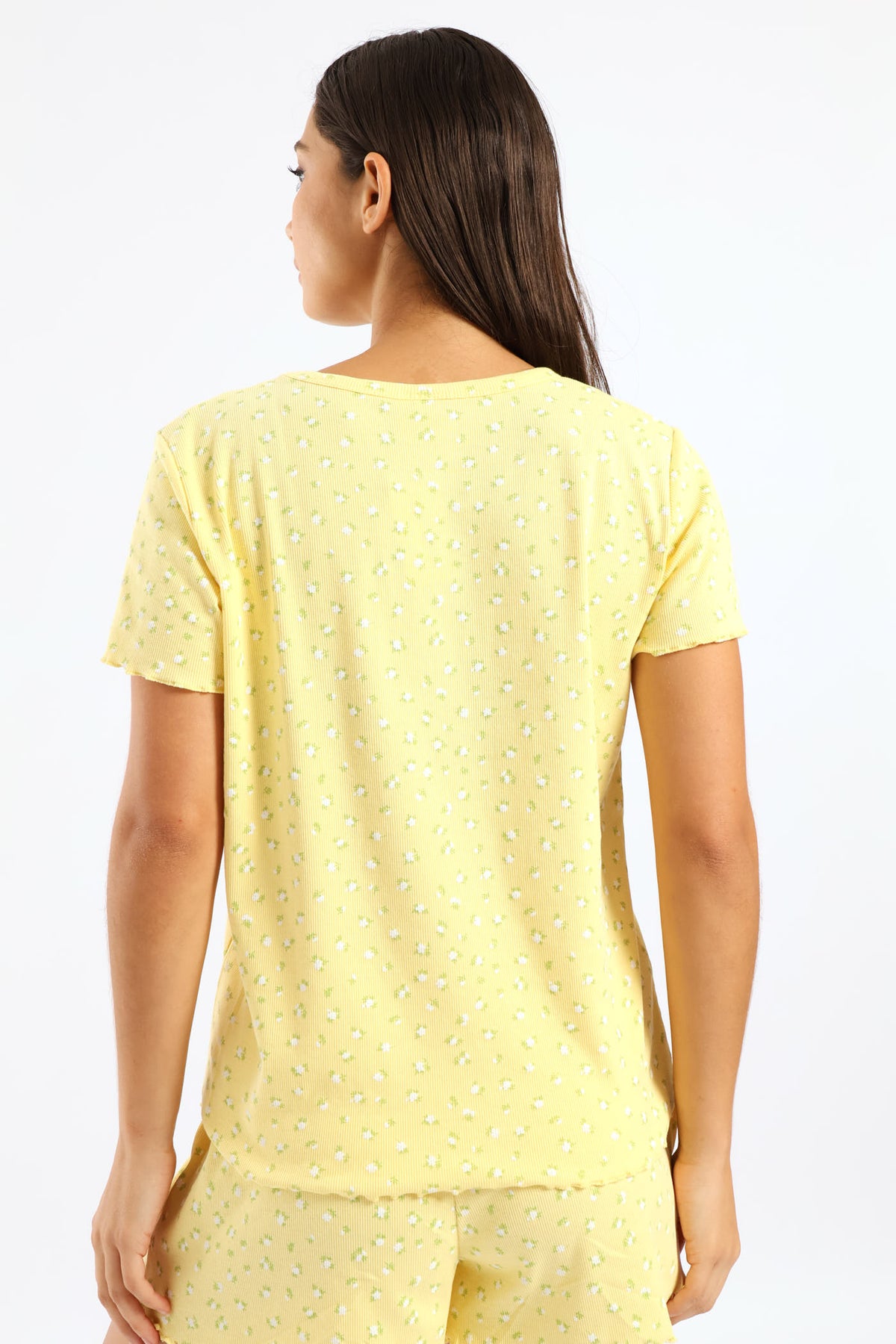 Rib Knit Ditsy Tee - Yellow