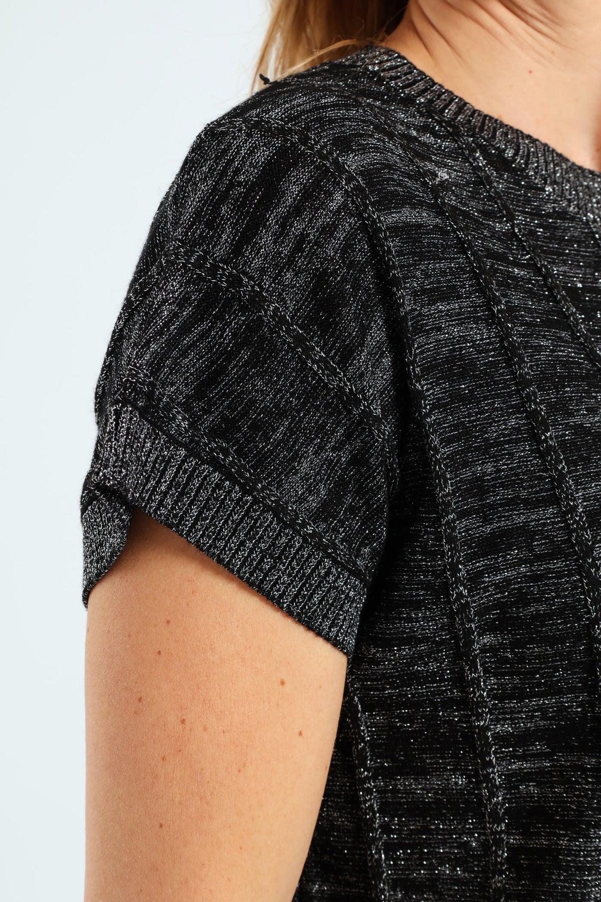 Lurex Pintuck Grown On Sweater - Black