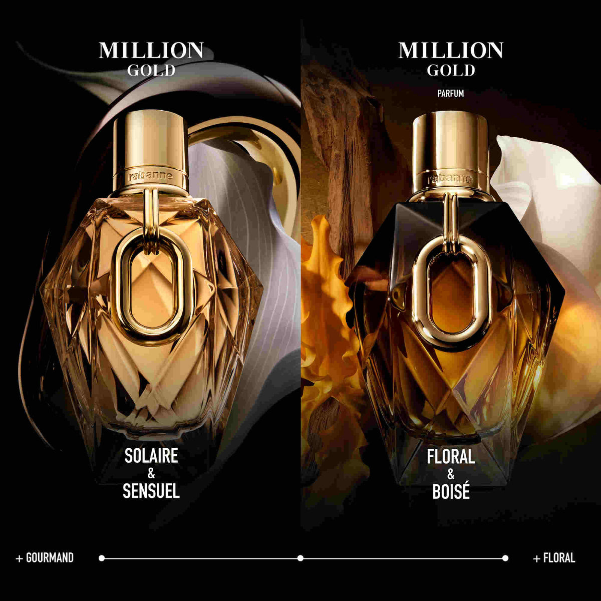 In a snap, strike a pose, and live the golden fantasy. Be the queen of the night. The blazing, glittering heart of the party, slaying the golden dance floor. Million Gold for Her Parfum unleashes a new fiery intensity. A rich and warm sandalwood addiction flashes the golden fantasy on an ultra-feminine floral accord of luminous jasmine absolute and solar ylang ylang. More sensual than ever, Million Gold for Her Parfum is the new woody incarnation of Rabanne’s grand floral.