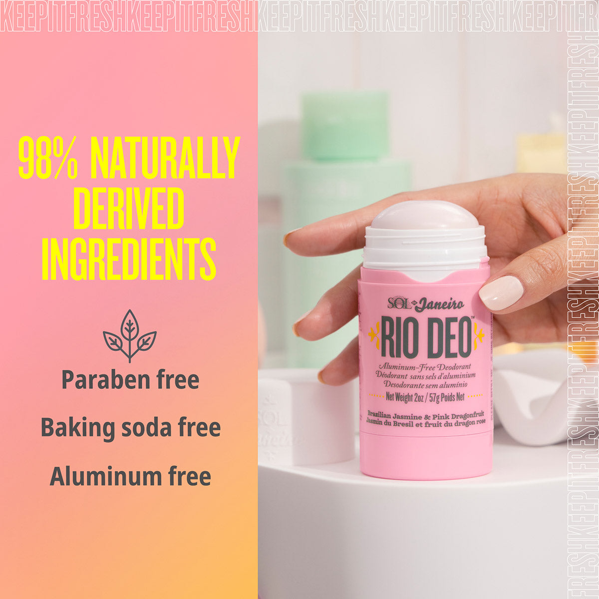 An aluminum-free, baking soda-free deodorant that eliminates odor to keep you smelling amazing from sunrise to sunset. It’s the Sol de Janeiro way. Rio Deo doesn’t mask odor with fragrance. It eliminates odor, then leaves you cheirosa (smelling incredible) with the iconic Cheirosa 68 fragrance (the same as the Beija Flor™ Cream scent.)