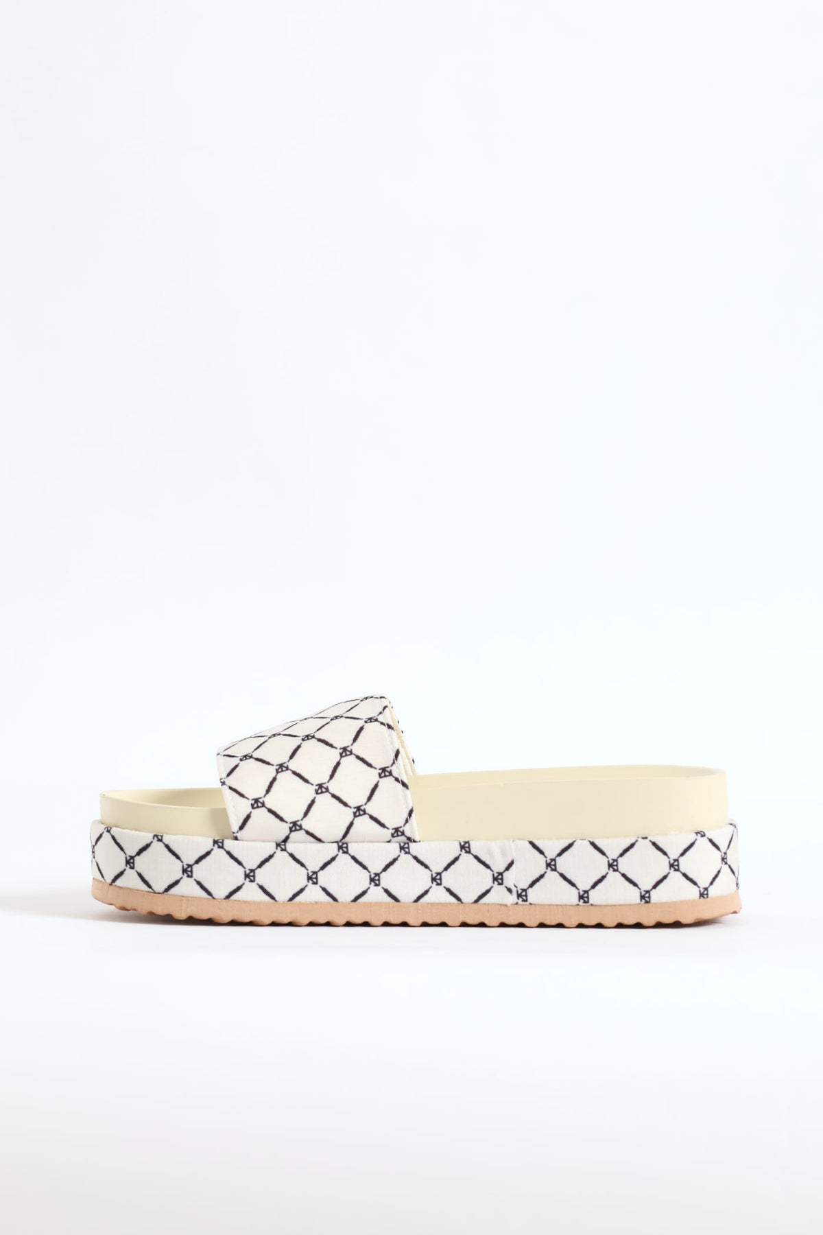 Monogram Printed Canvas Flatform Slide - Navy/White