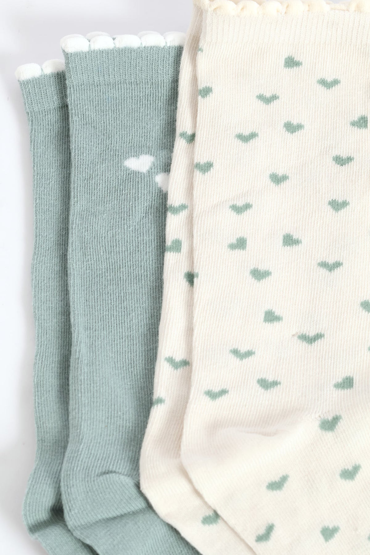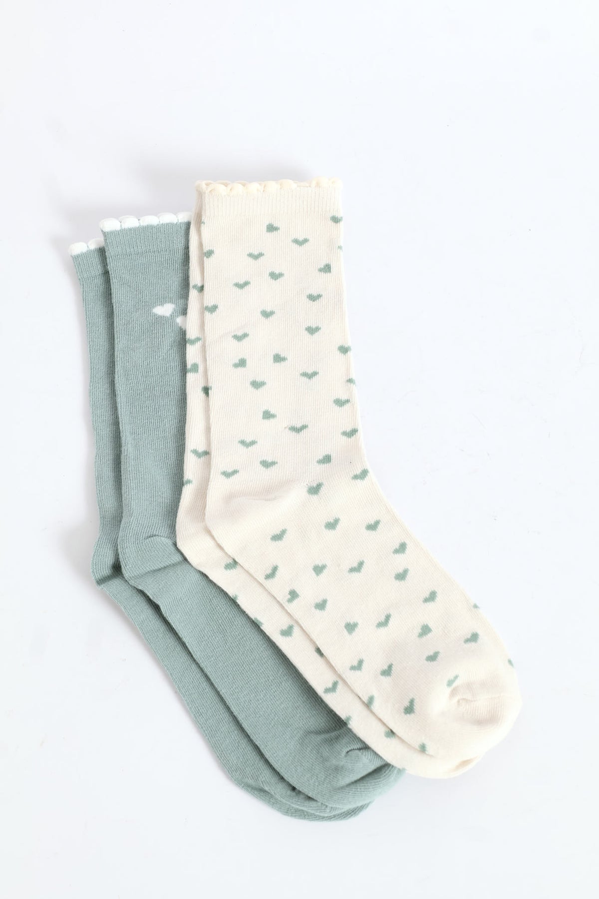 2 Pack Hearts Crew Fashion Socks - Duck Egg