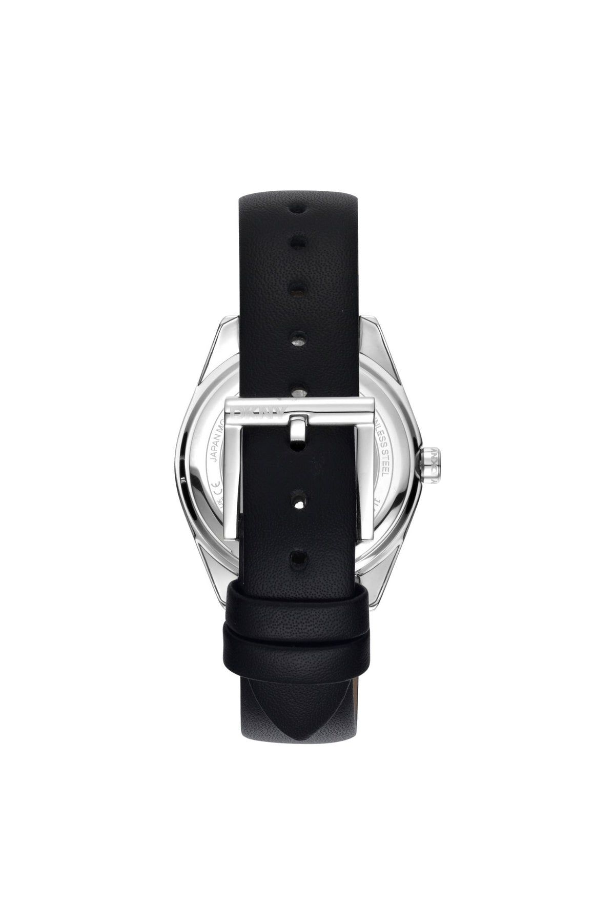 Logo Stainless Steel Case & Silver White Dial Watch With Black Leather Strap - Black